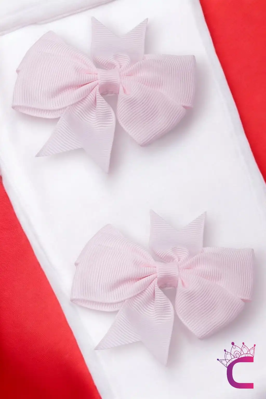 2'li Kız Çocuk Grogren Saten Fiyonk Toka Seti Açık Pembe - Fiyonklu Kurdele Klips Pens Saç Tokası