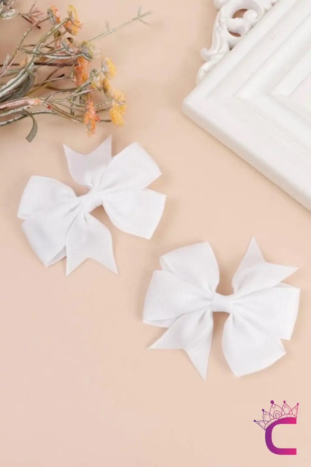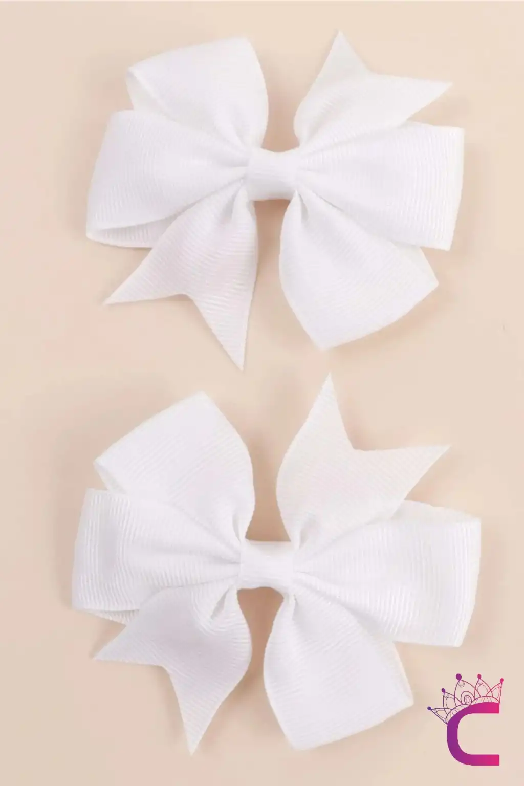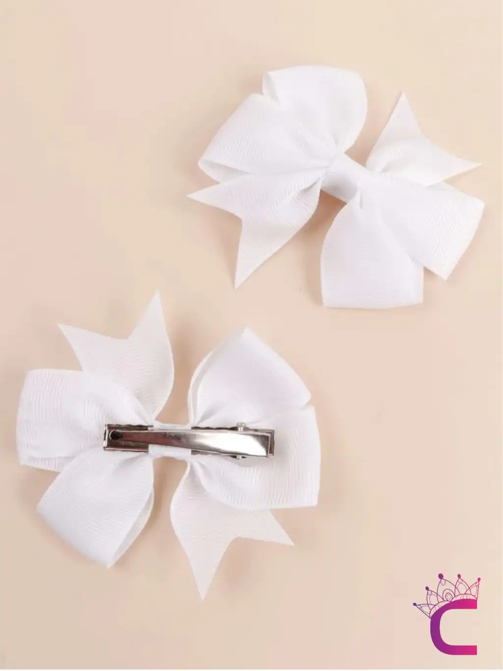 2'li Kız Çocuk Grogren Saten Fiyonk Toka Seti Beyaz - Fiyonklu Kurdele Klips Pens Saç Tokası