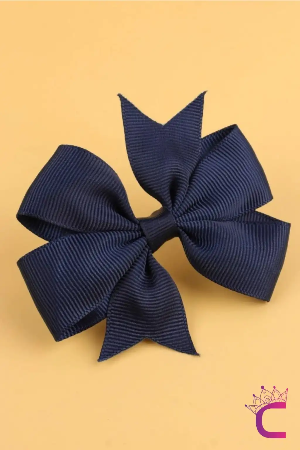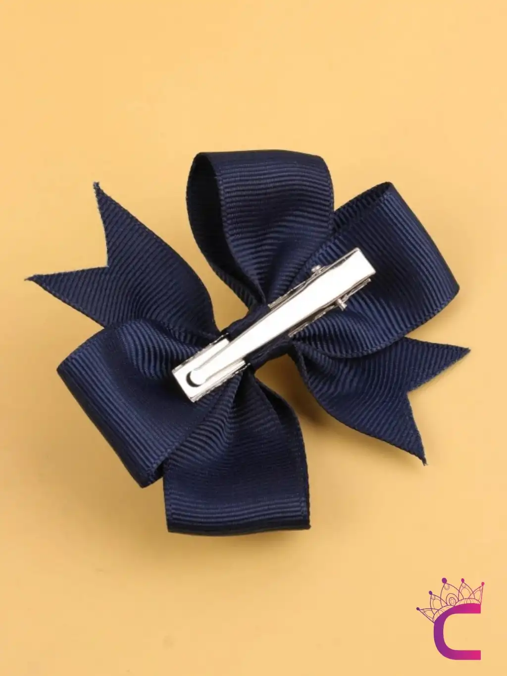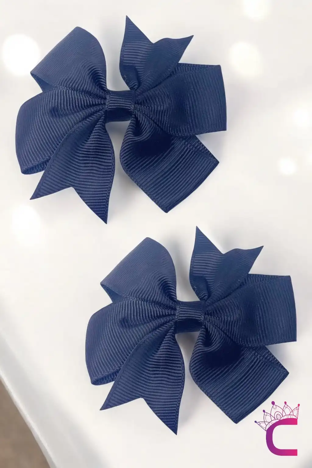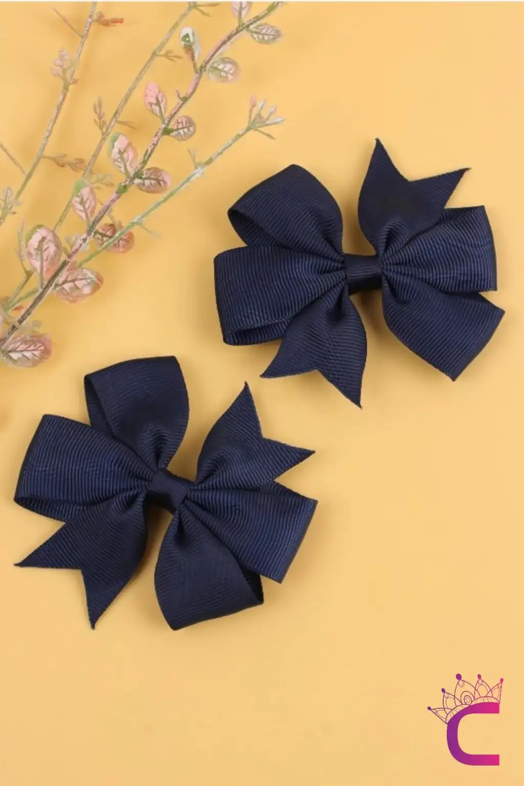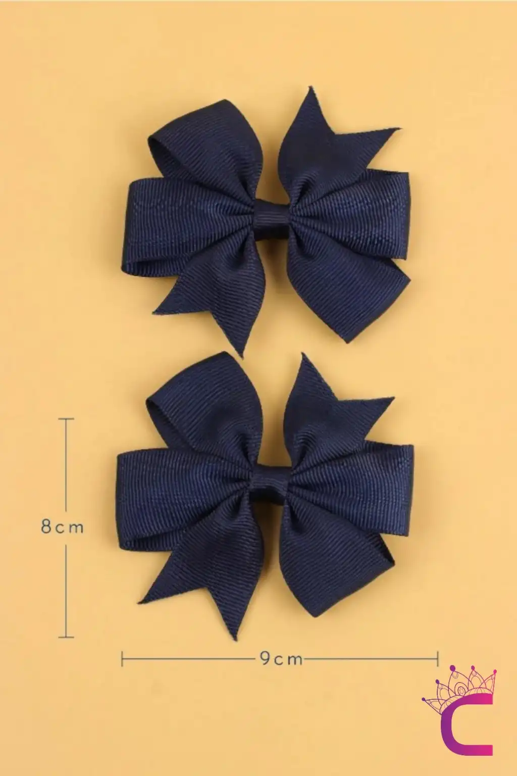 2'li Kız Çocuk Grogren Saten Fiyonk Toka Seti Lacivert - Fiyonklu Kurdele Klips Pens Saç Tokası