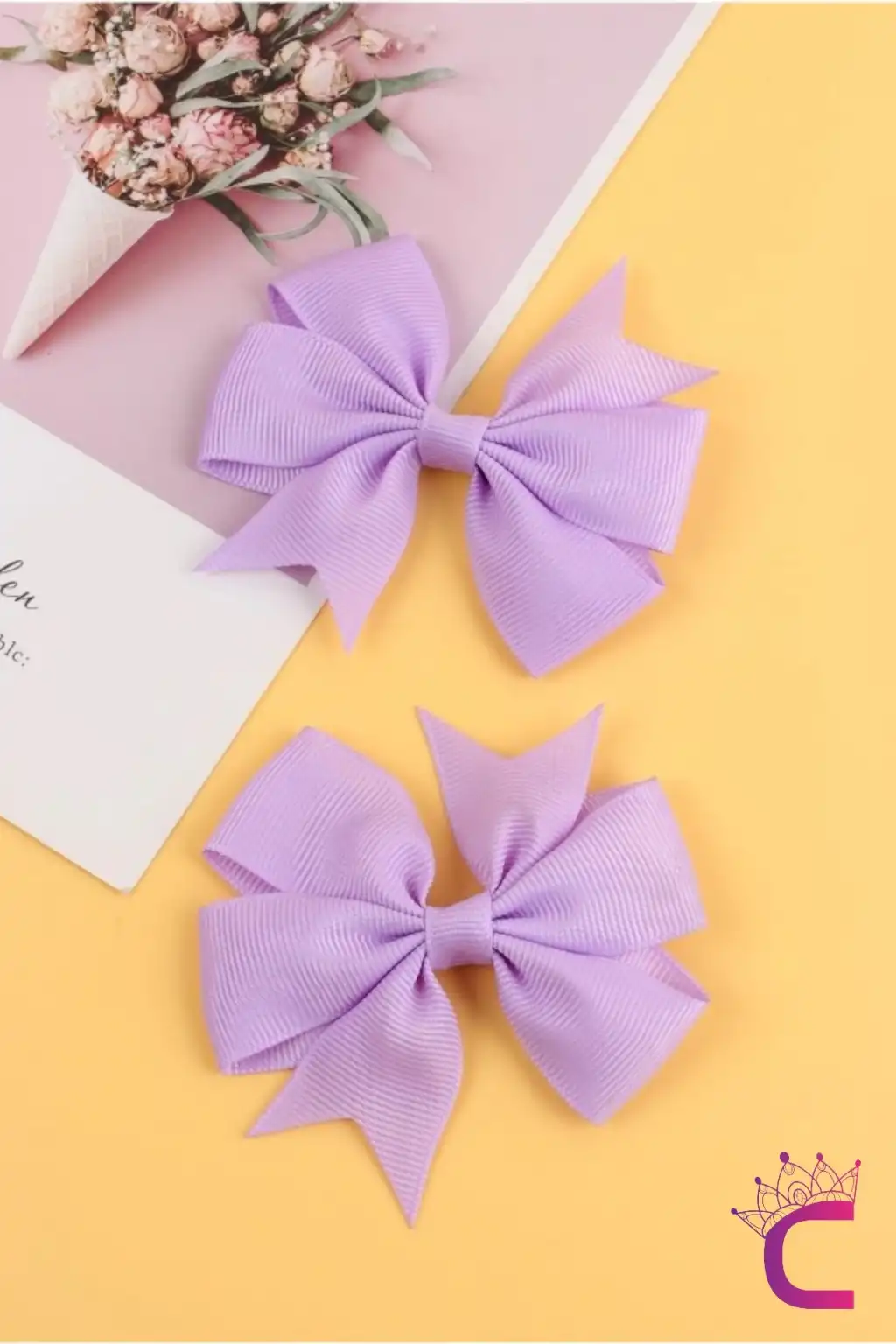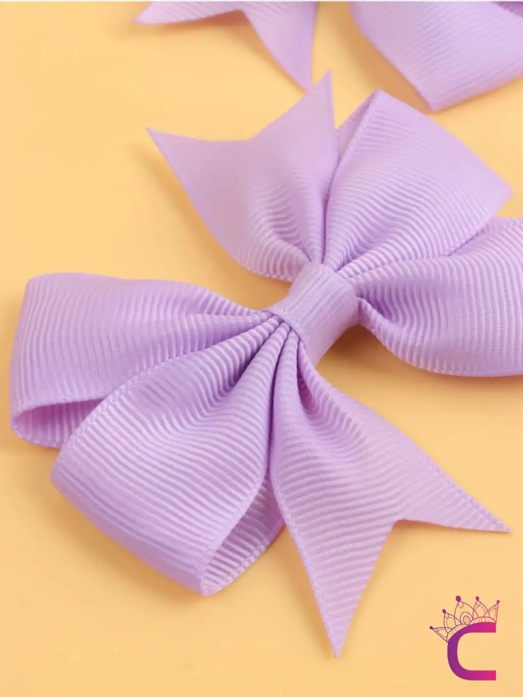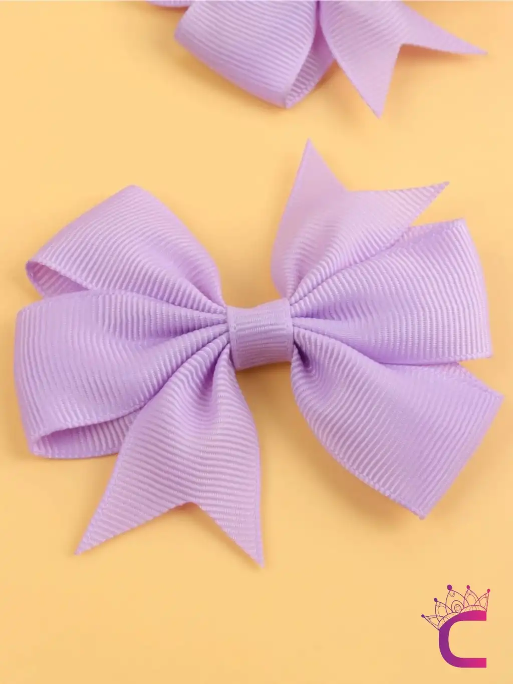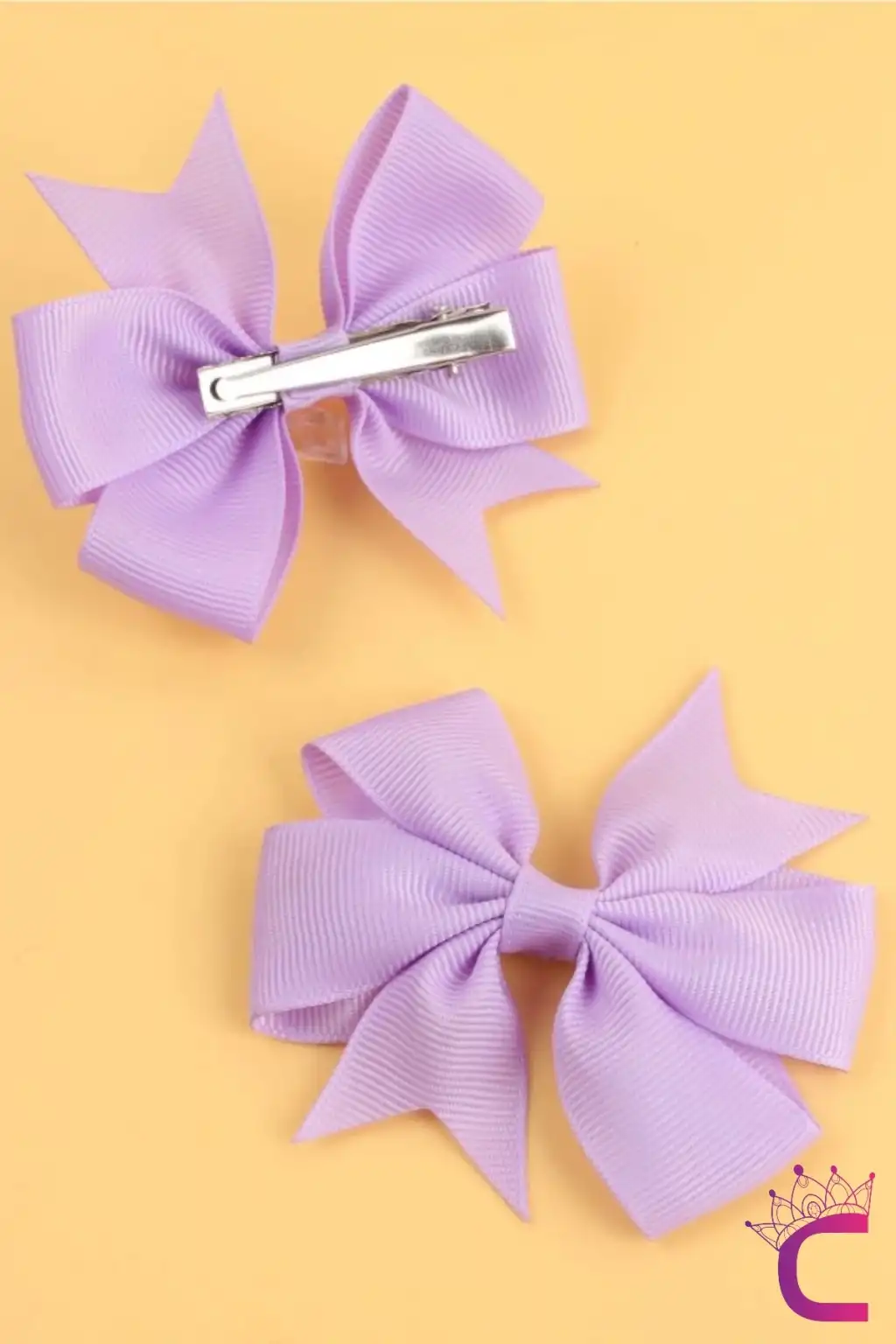 2'li Kız Çocuk Grogren Saten Fiyonk Toka Seti Lila Renk - Fiyonklu Kurdele Klips Pens Saç Tokası