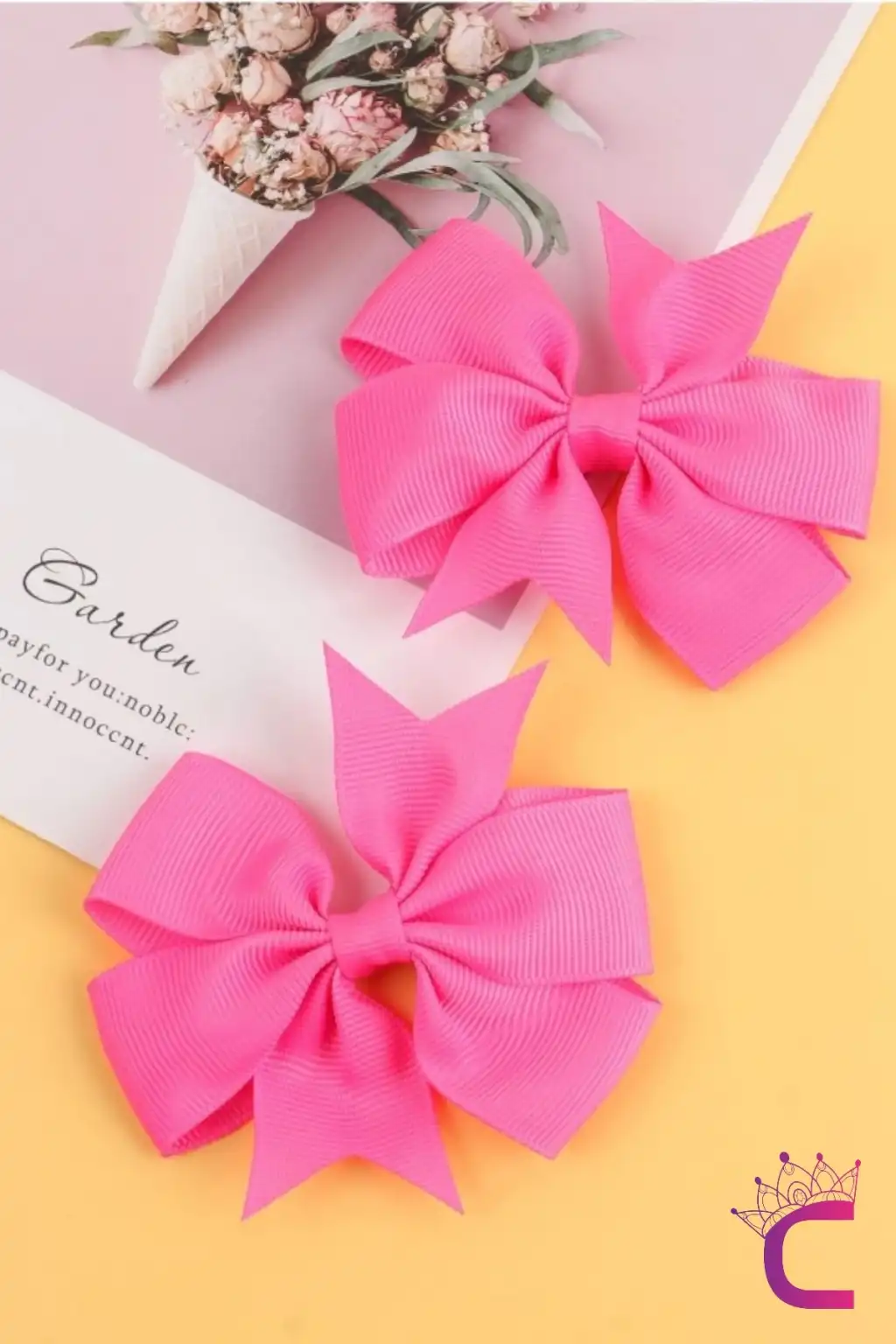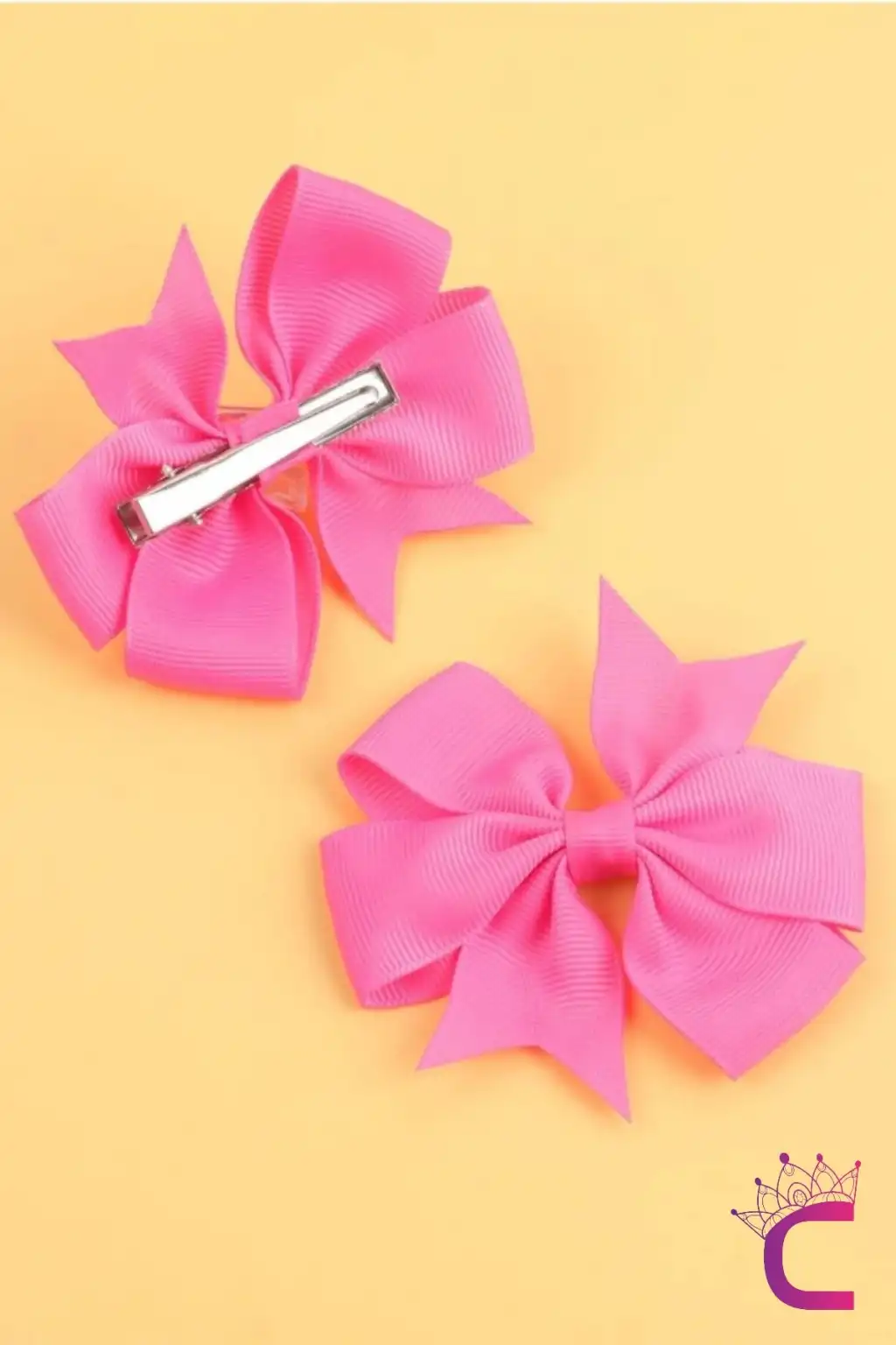 2'li Kız Çocuk Grogren Saten Fiyonk Toka Seti Pembe - Fiyonklu Kurdele Klips Pens Saç Tokası