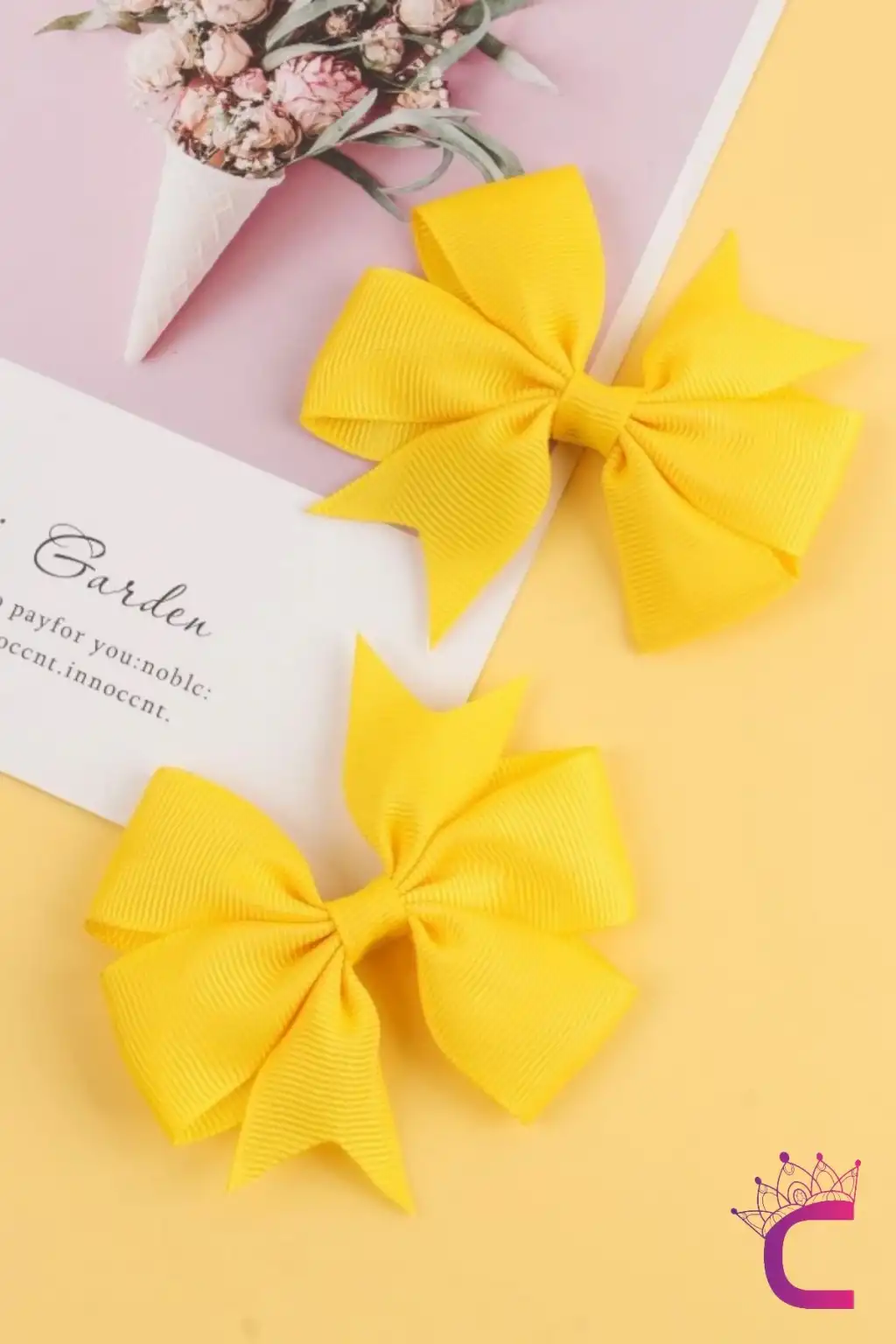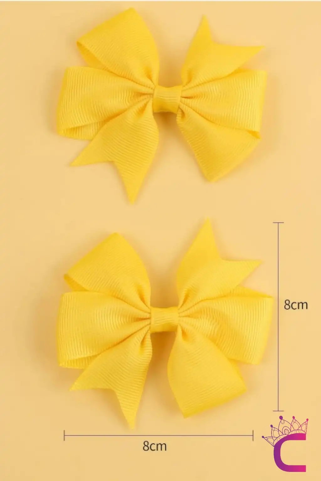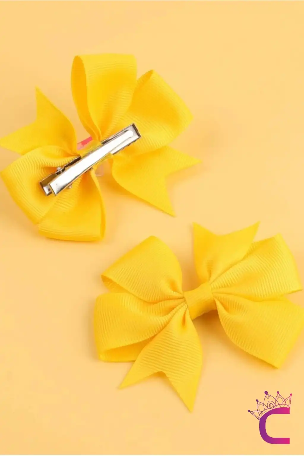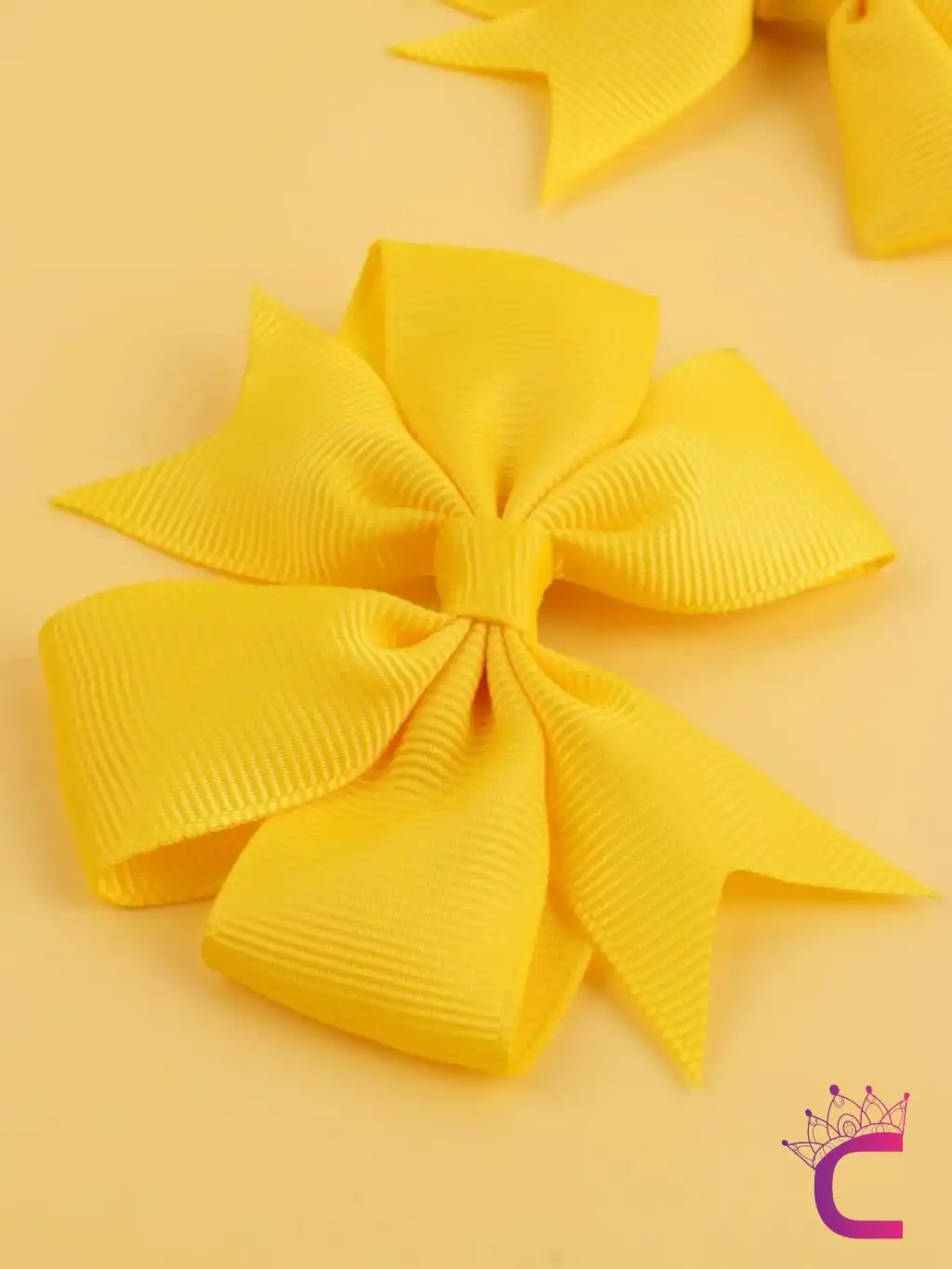 2'li Kız Çocuk Grogren Saten Fiyonk Toka Seti Sarı - Fiyonklu Kurdele Klips Pens Saç Tokası