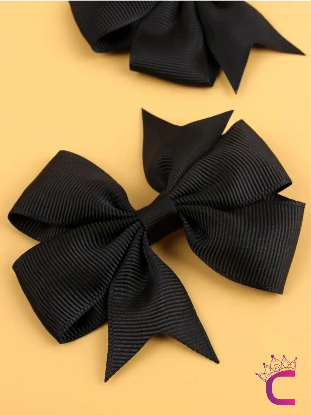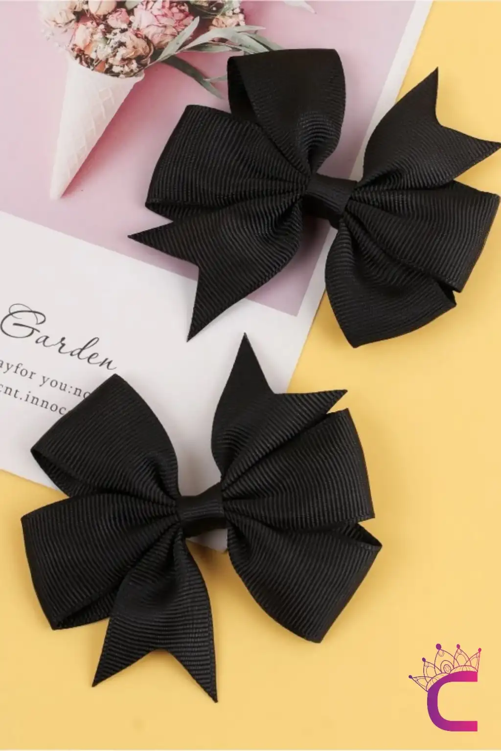 2'li Kız Çocuk Grogren Saten Fiyonk Toka Seti Siyah - Fiyonklu Kurdele Klips Pens Saç Tokası