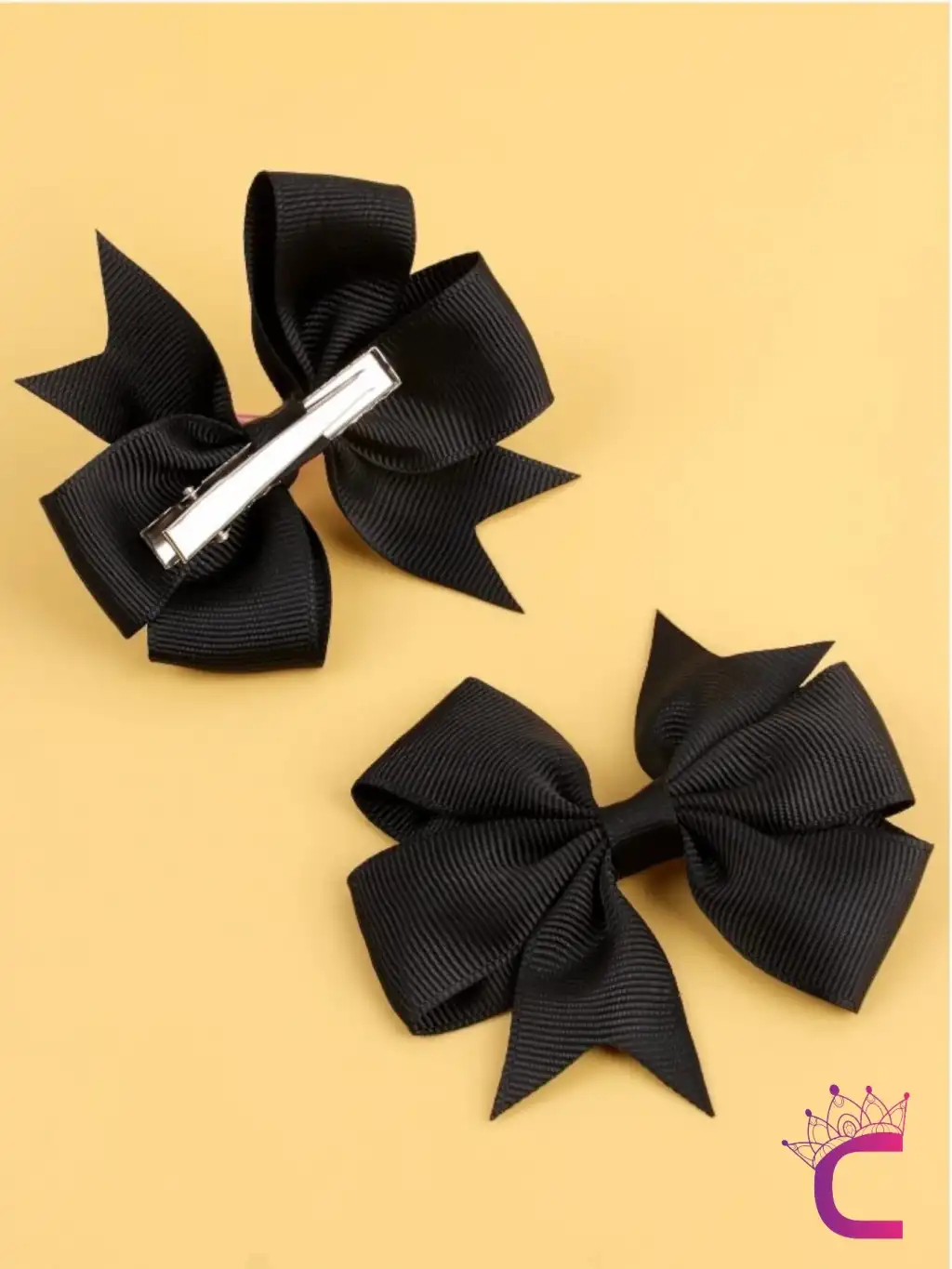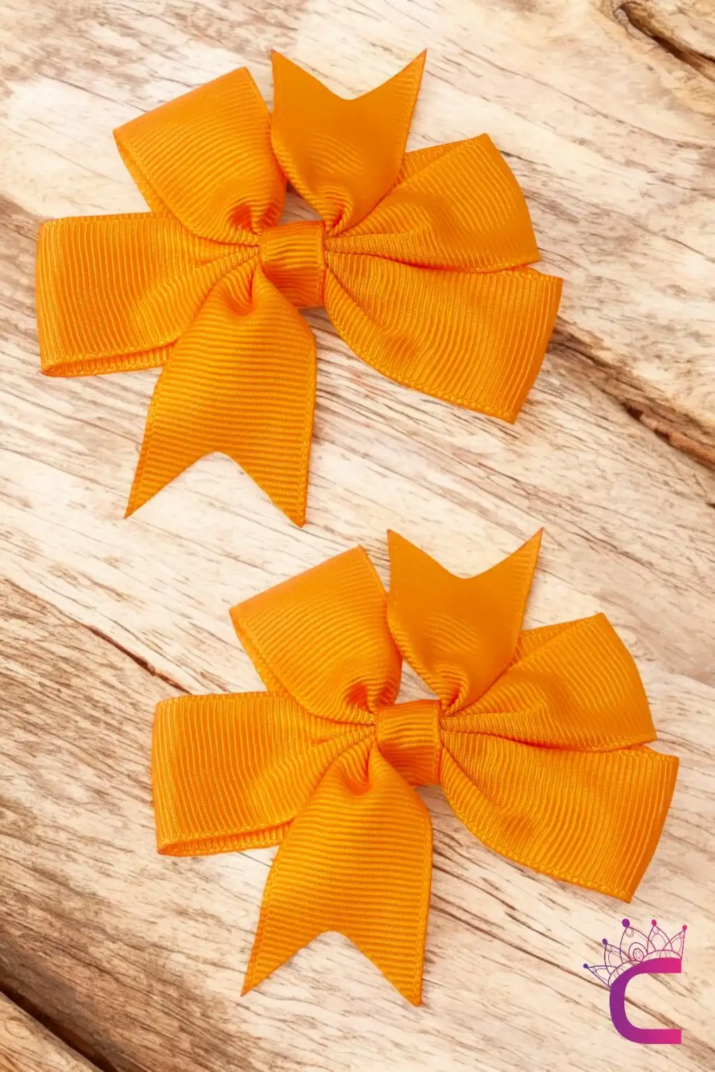 2'li Kız Çocuk Grogren Saten Fiyonk Toka Seti Turuncu - Fiyonklu Kurdele Klips Pens Saç Tokası