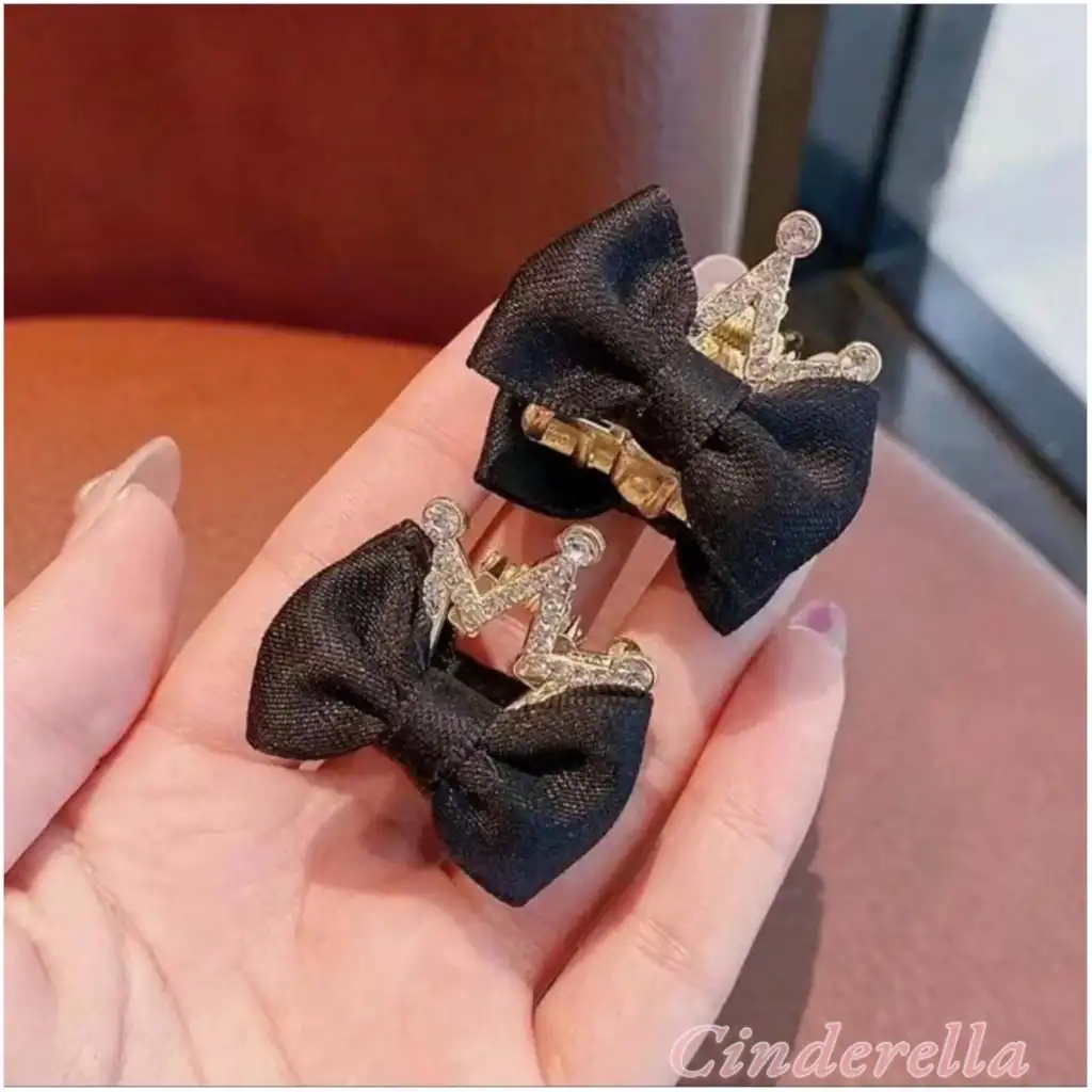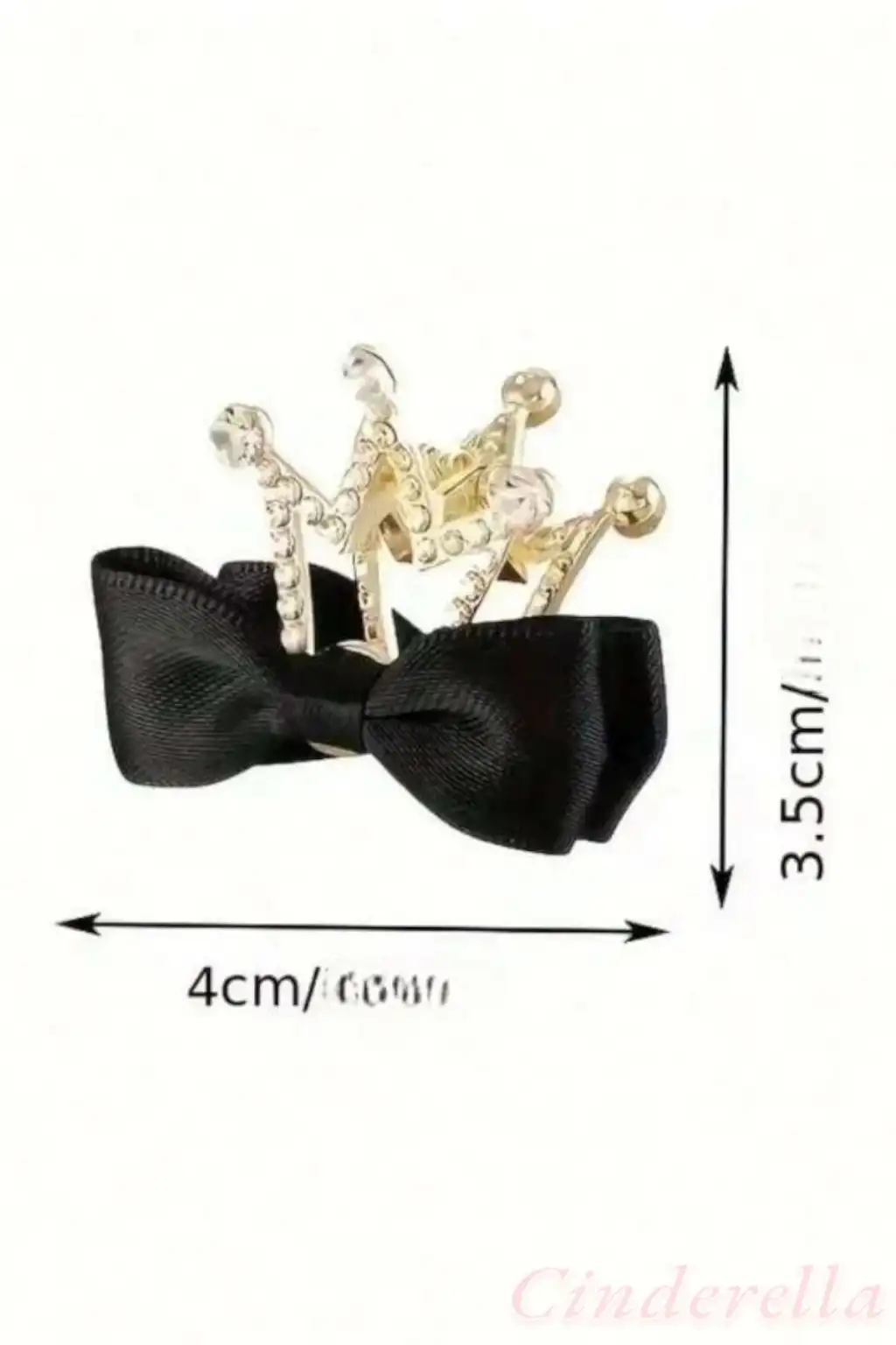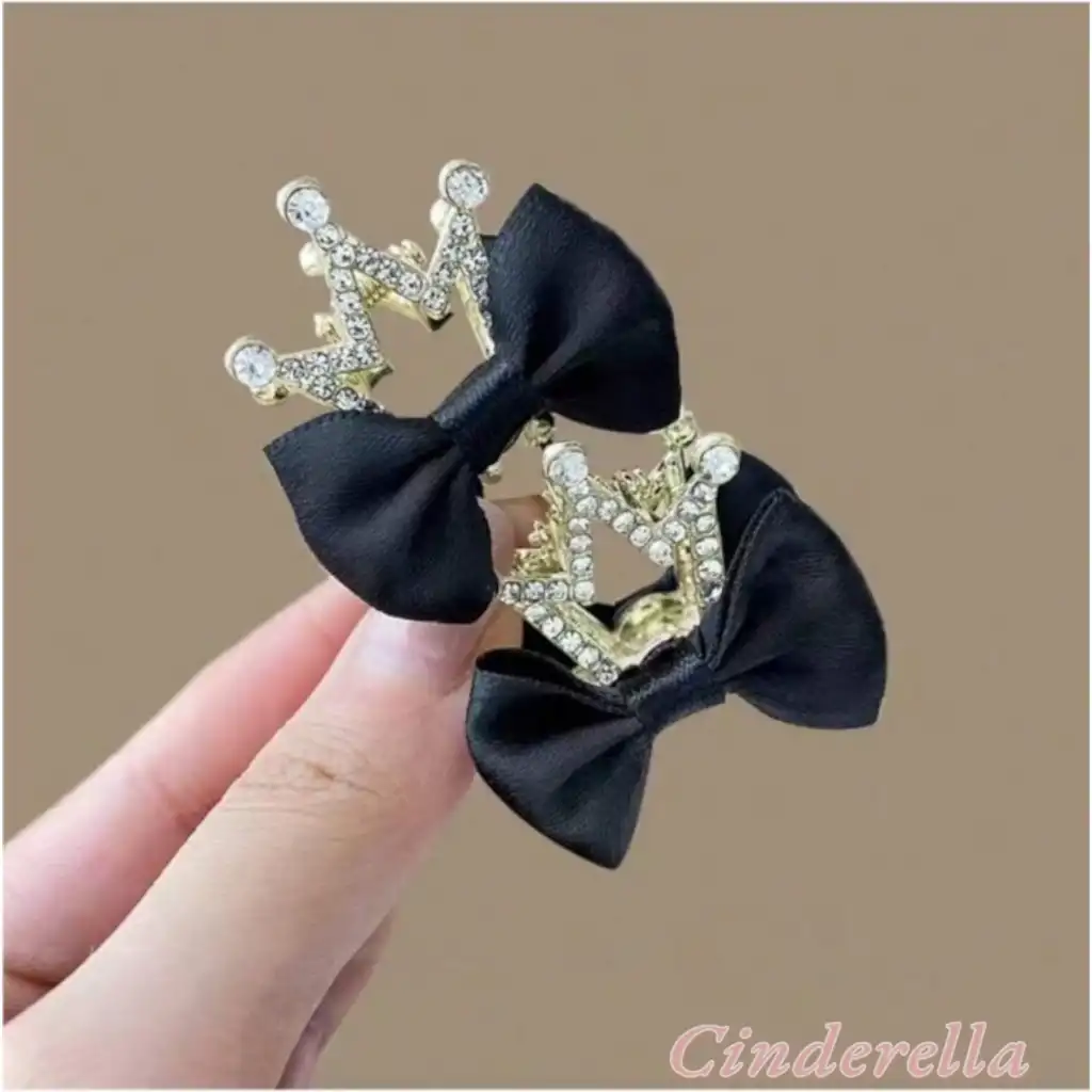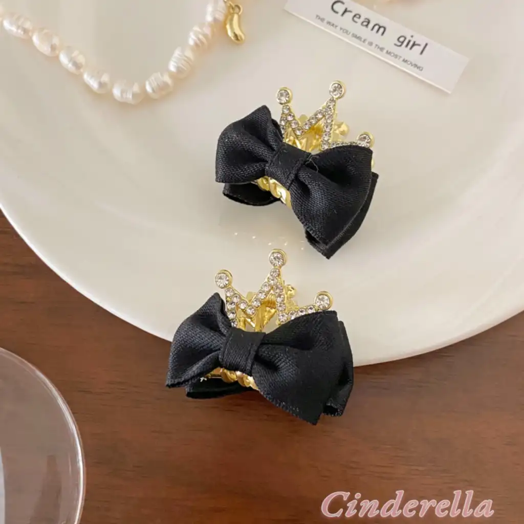 2'li Kurdele Kraliçe Taçlı Kristal Taşlı Çocuk Pençe Toka Siyah - Kız Çocuk Doğum Günü Saç Aksesuarı