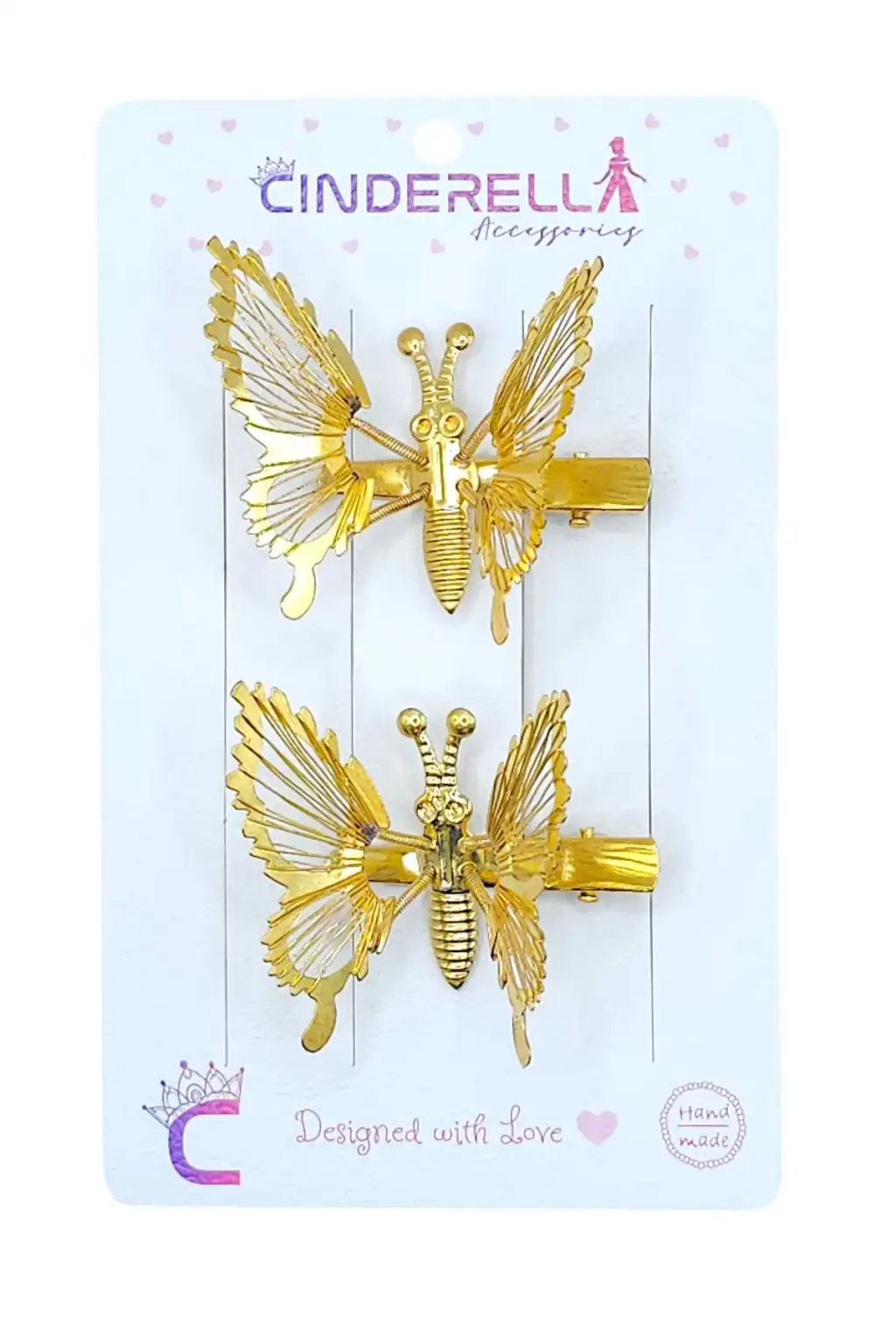 2'li Retro Kanatları Sallanan Kelebek Toka Seti Gold Metal - Hareketli Kelebekli Pens Saç Tokası