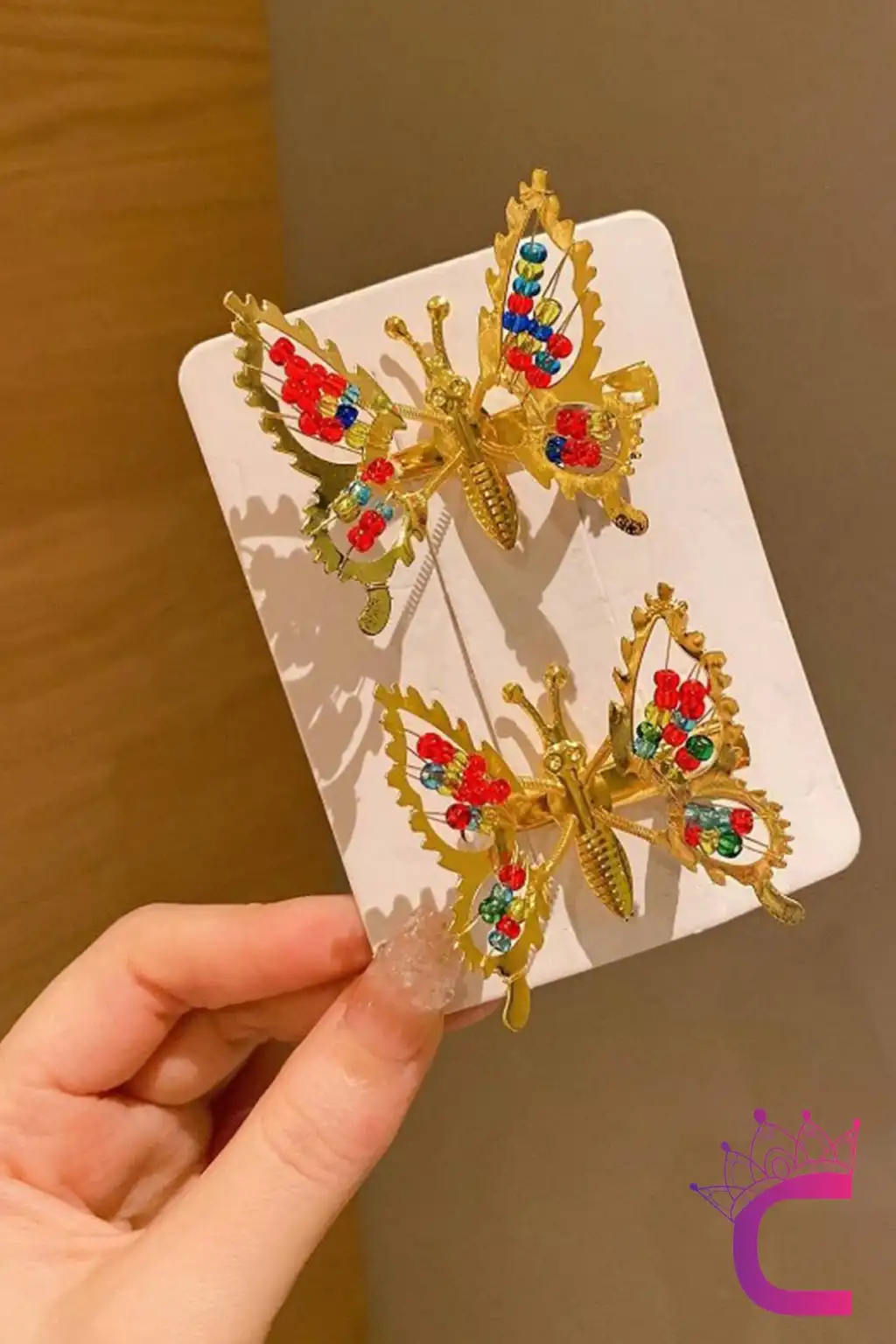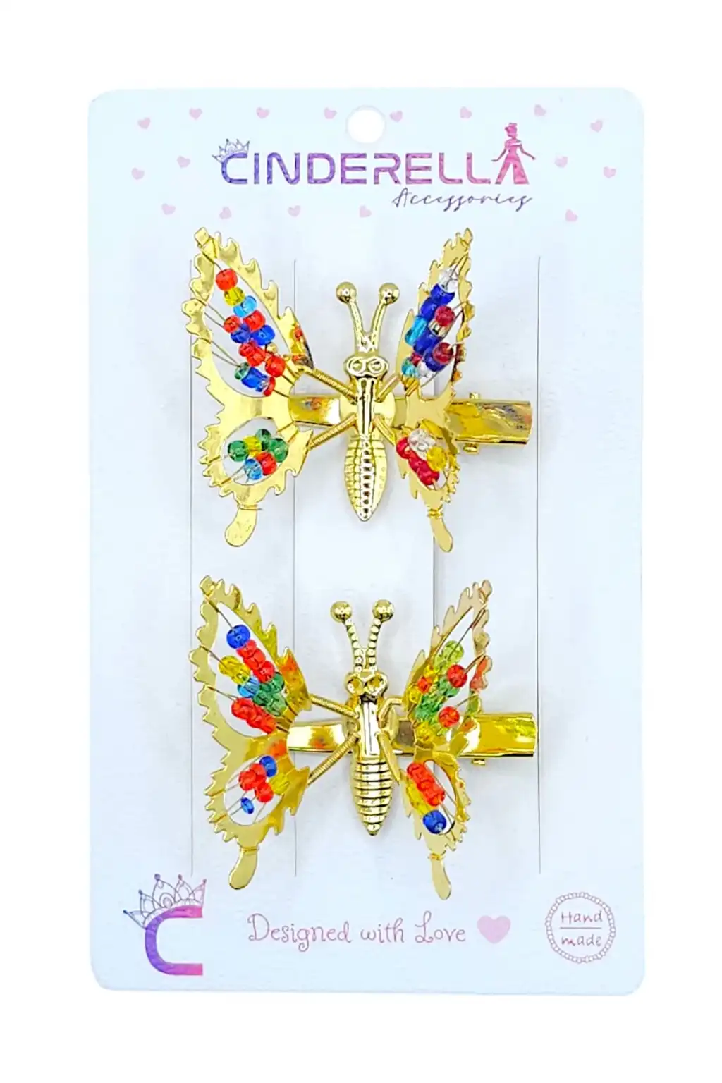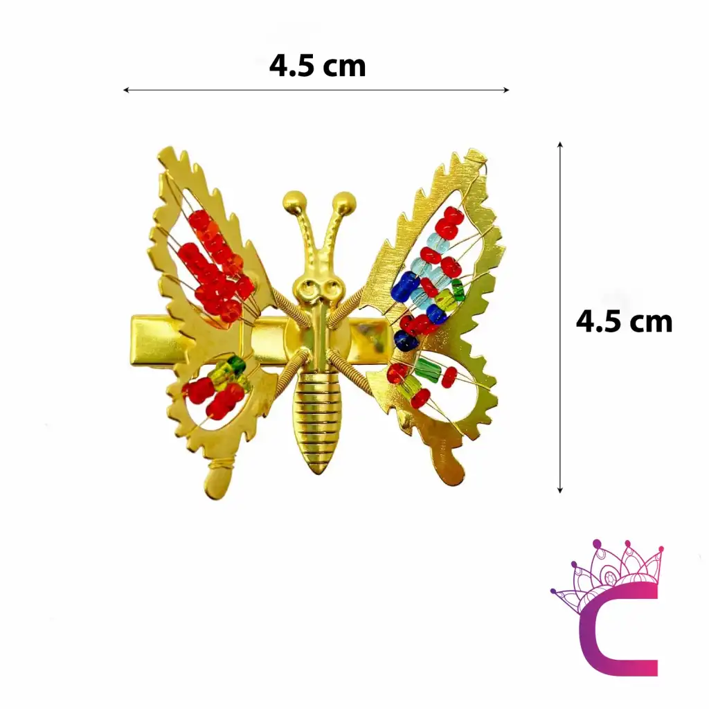 2'li Retro Sallanan Kelebek Toka Renkli Boncuklu Gold Metal - Hareketli Kanatlı Kelebekli Saç Tokası