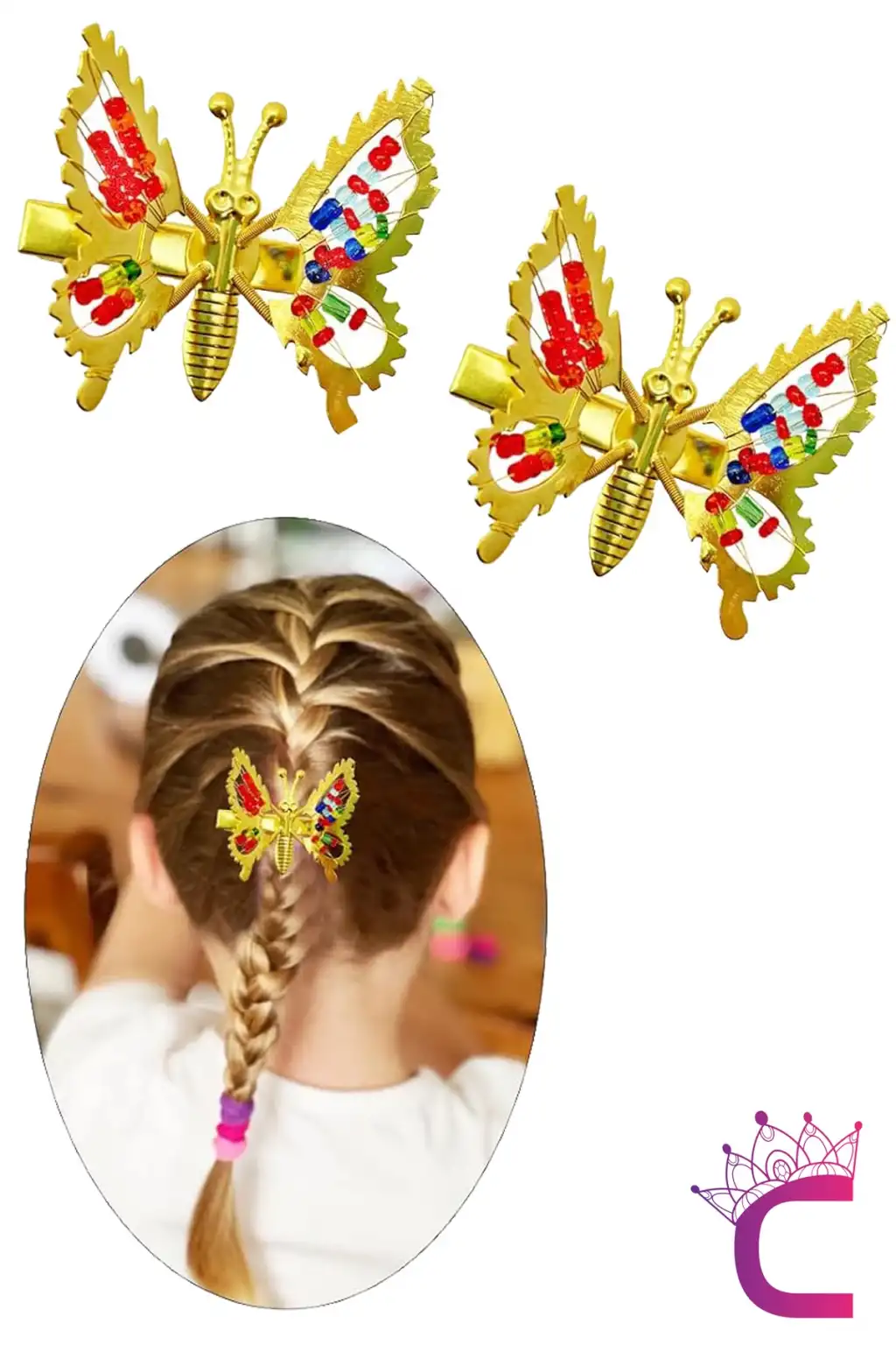 - Retro tasarımıyla dikkat çeken bu sallanan kelebek toka, çocukların ve kadınların saçlarına şıklık katıyor.