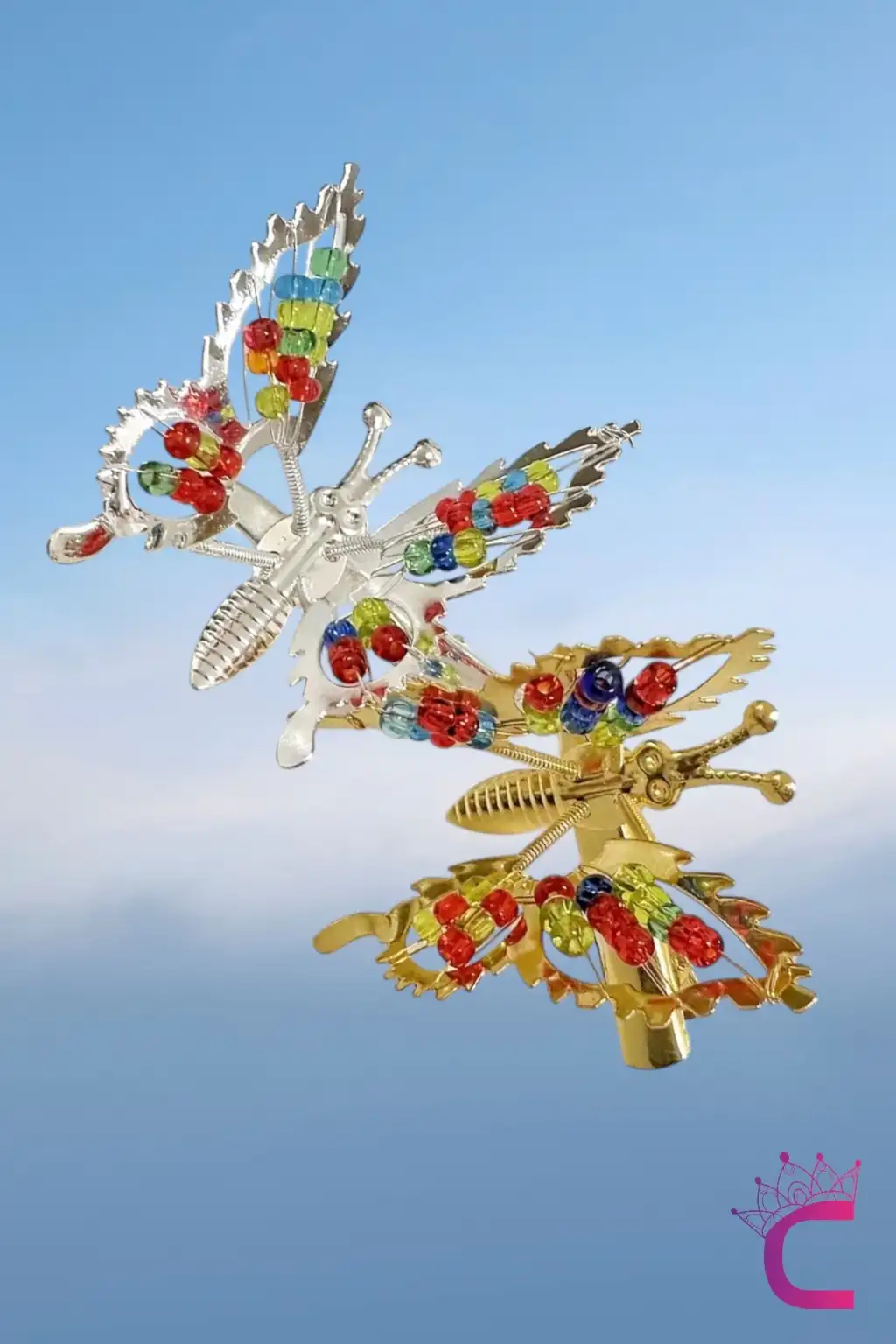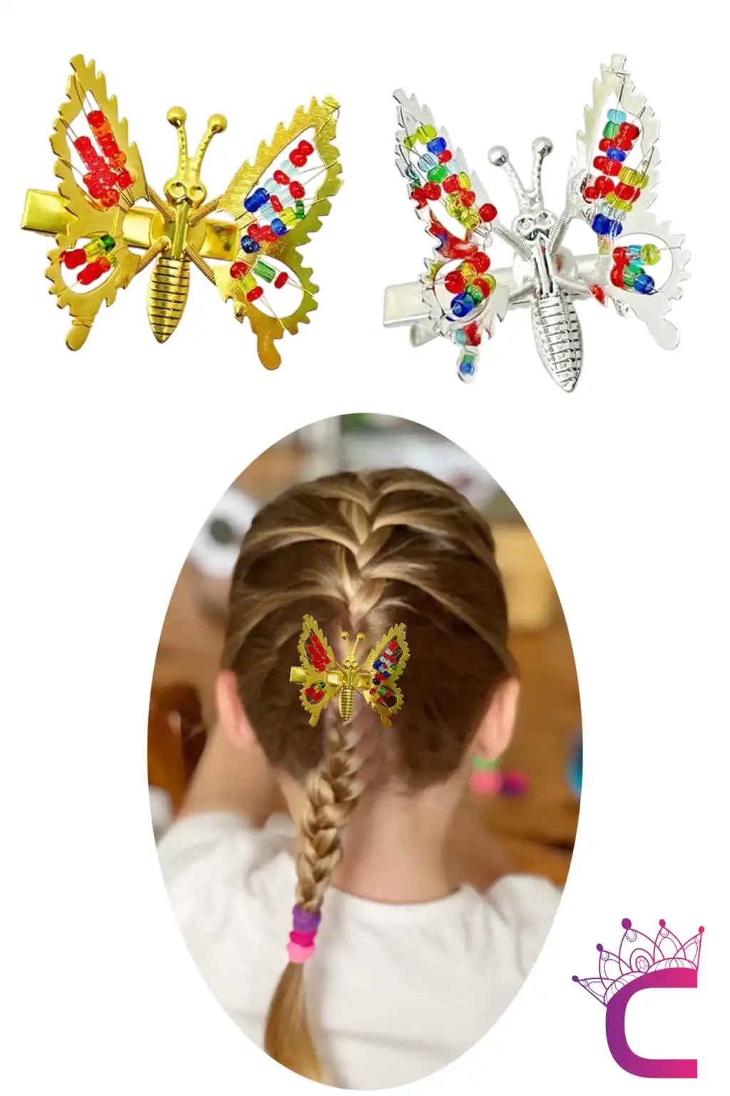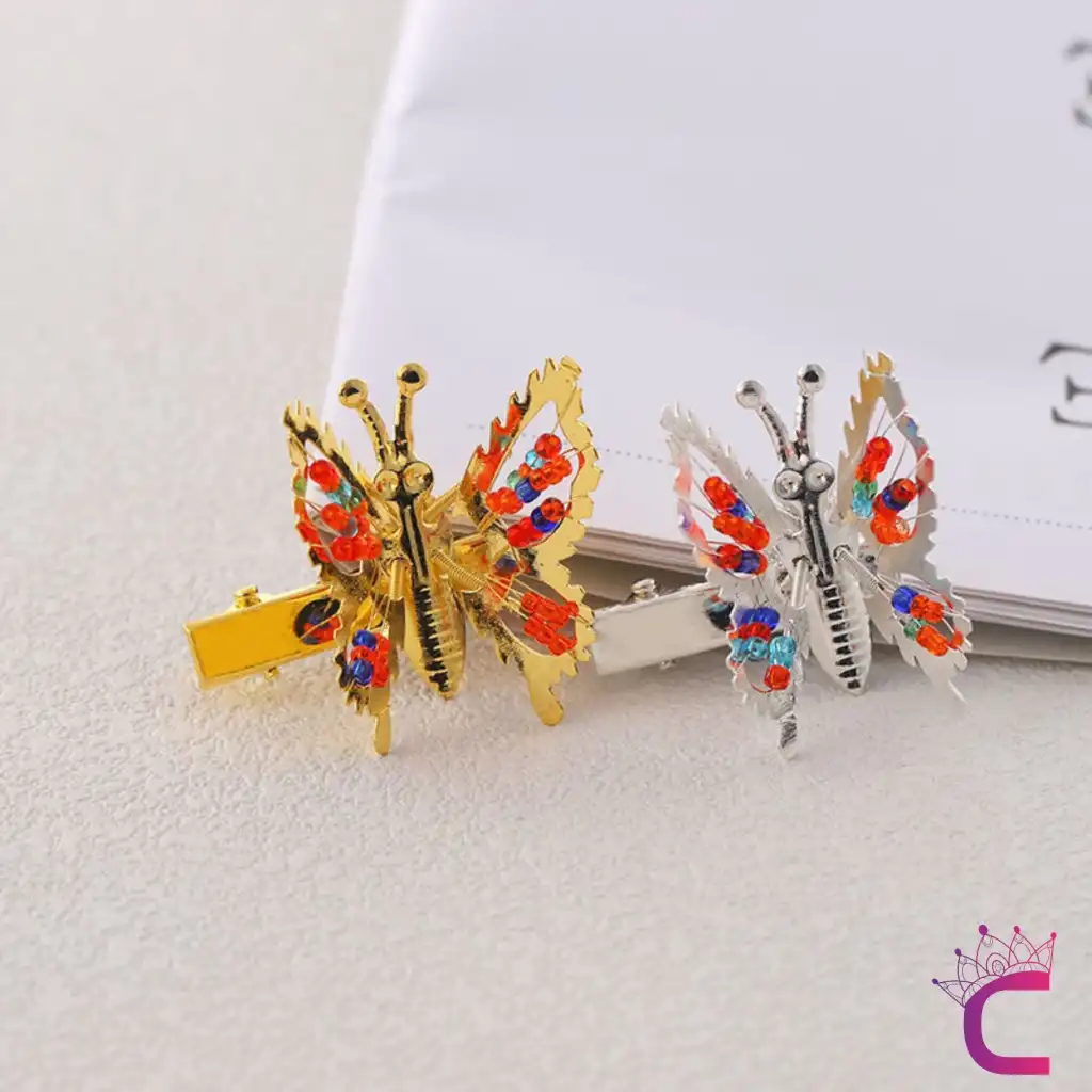 2'li Retro Sallanan Metal Kelebek Toka Boncuklu Gold Gümüş - Hareketli Kanatlı Kelebekli Saç Tokası