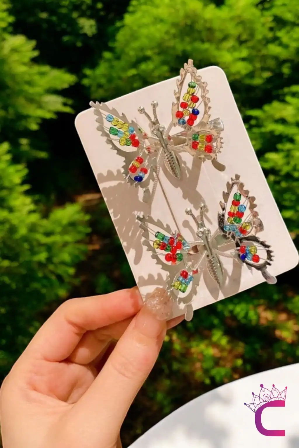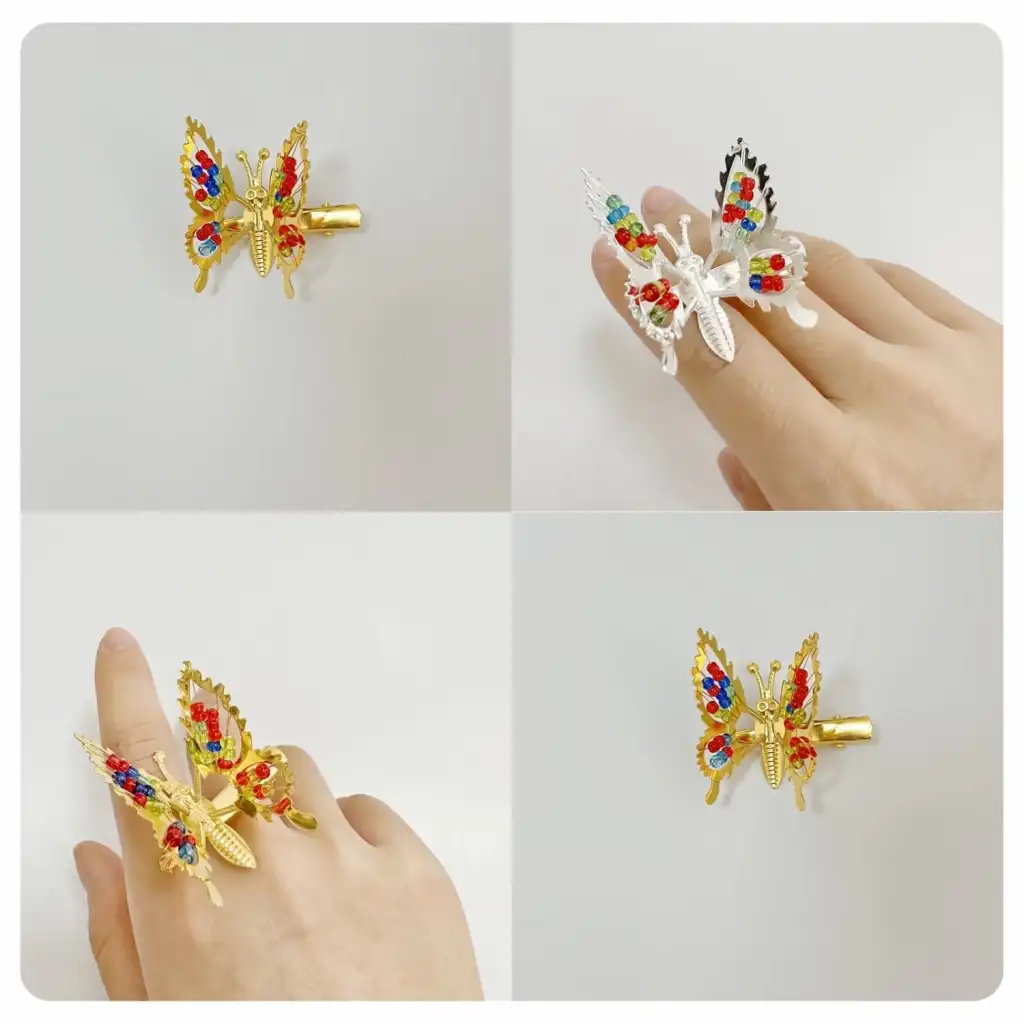 2'li Retro Sallanan Metal Kelebek Toka Boncuklu Gümüş - Hareketli Kanatlı Kelebekli Çocuk Saç Tokası