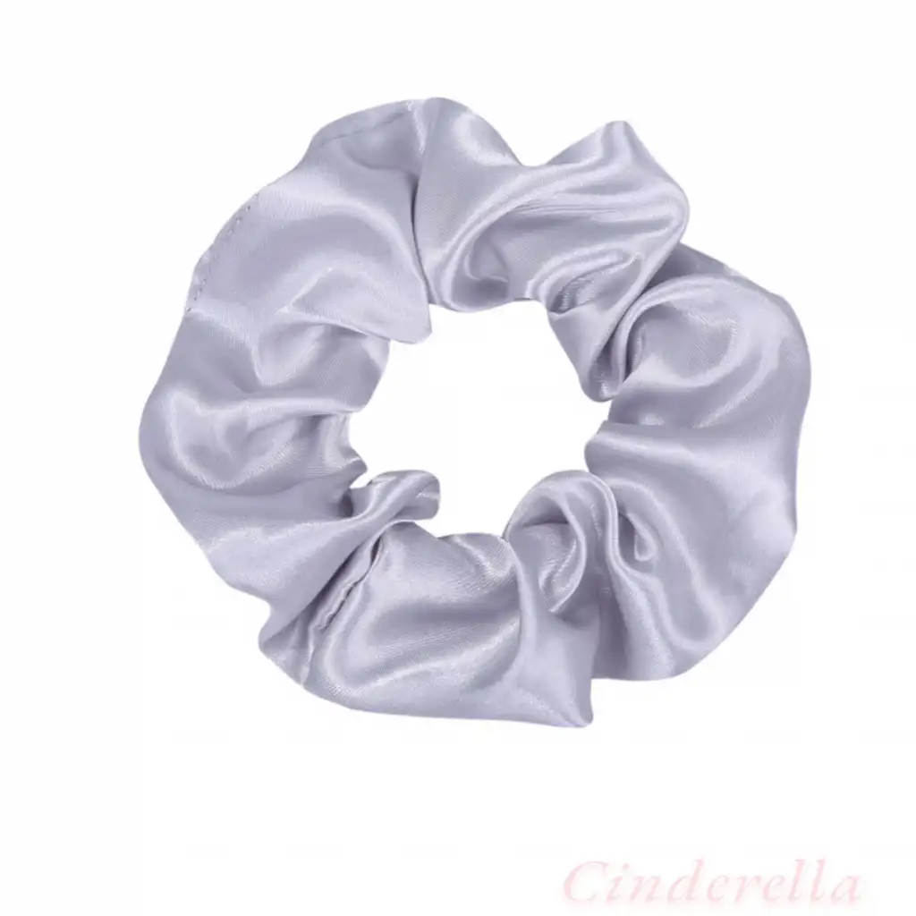 2'li Saten Bej & Açık Gri Orta Boy Scrunchie Simit Toka - Renkli Lastikli Saç Topuz Tokası
