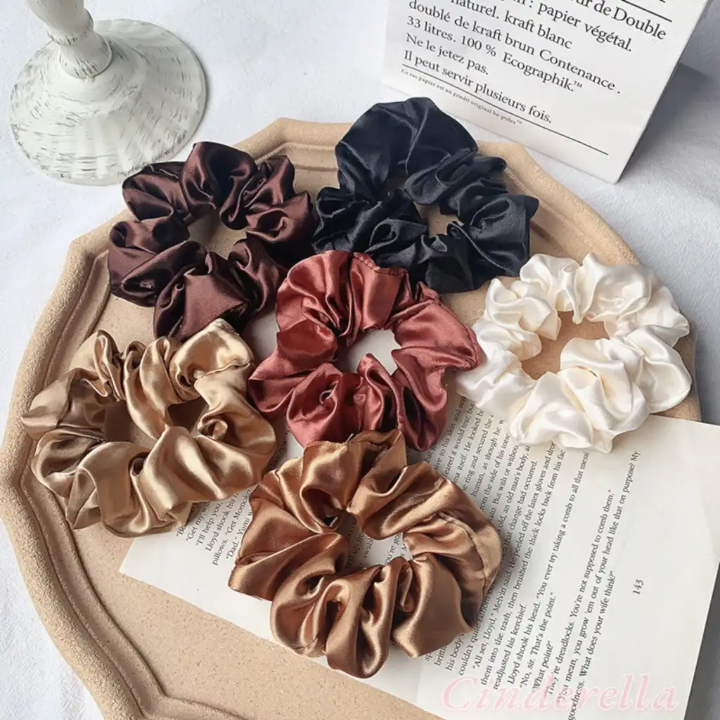 2'li Saten Siyah & Altın Varak Scrunchie Simit Lastik Toka - Renkli Lastikli Saç Toplama Tokası
