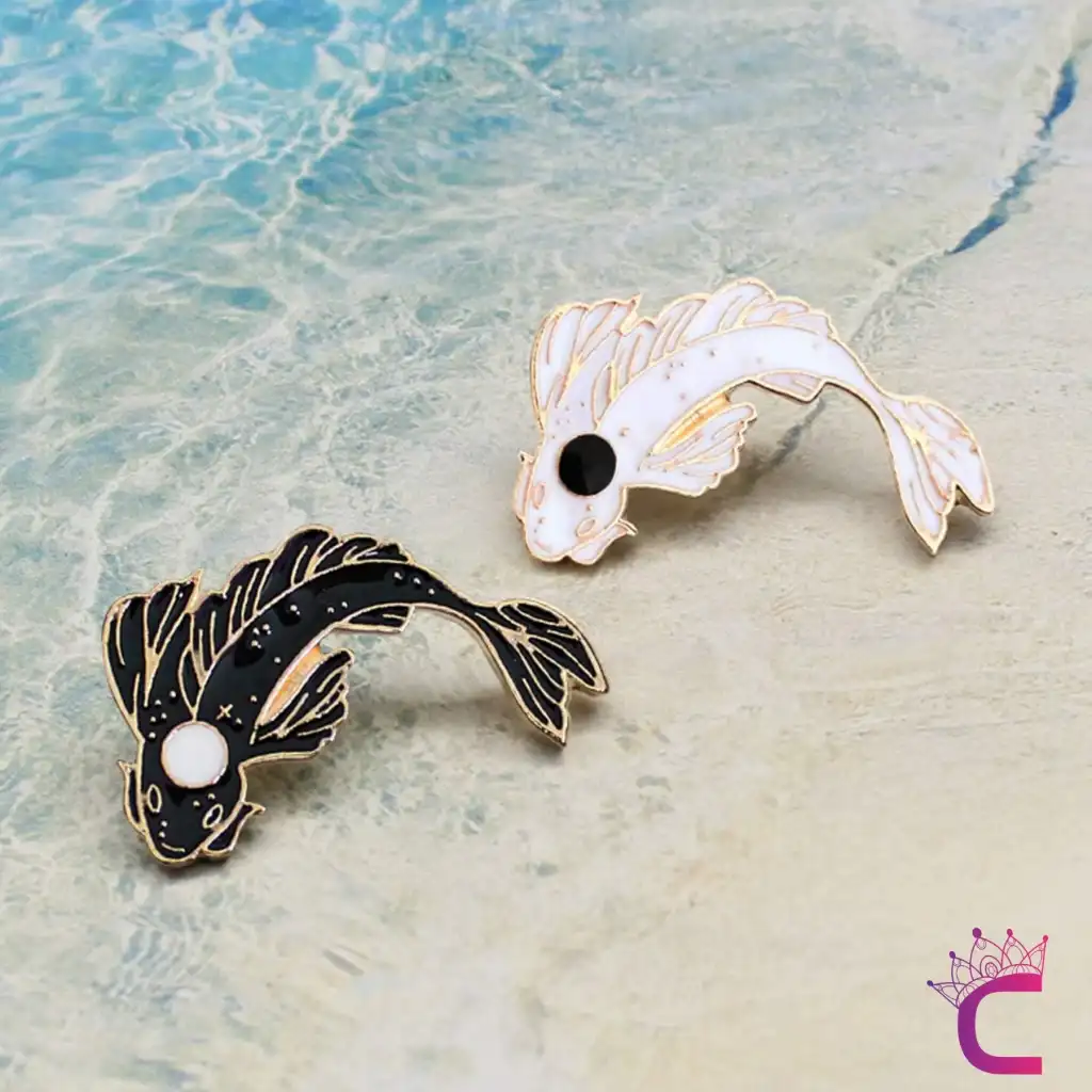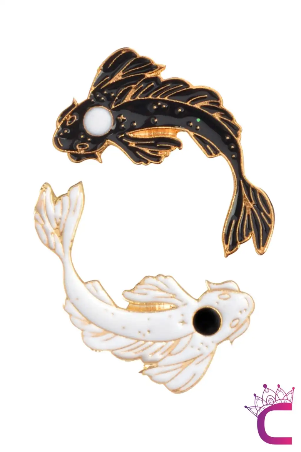 - Hem erkek hem de kadın kullanıcılar için uygun, unisex tasarımıyla herkesin beğenisini kazanan siyah beyaz koi balık broş seti.