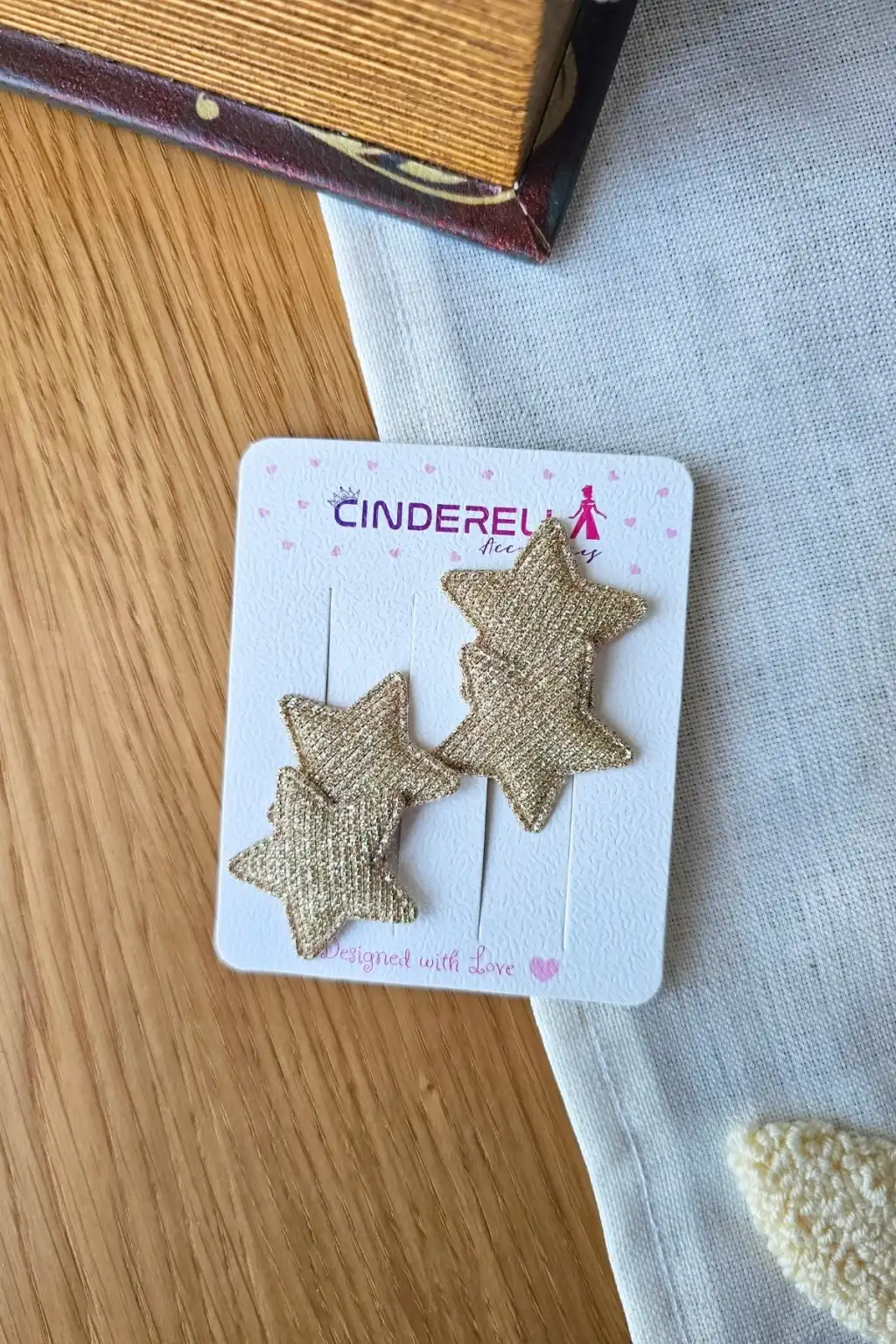 2'li Yaldız Gold Renk Çift Yıldızlı Saçsız Bebek Tokası - Az Saçlı Kız Bebek Çıtçıtlı Yenidoğan Toka