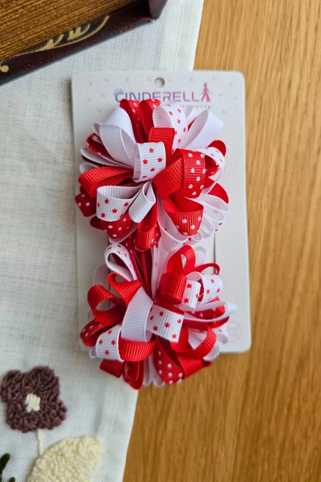 - İki adet Yıldızlı Kırmızı Kurdele Çiçekli pens toka seti ile hem şıklığı hem de neşeyi bir arada sunar.