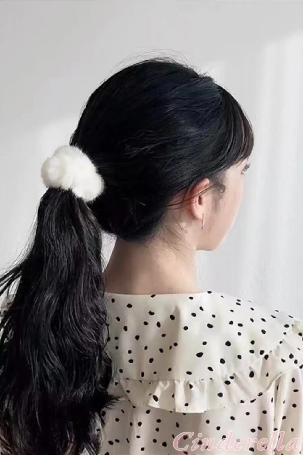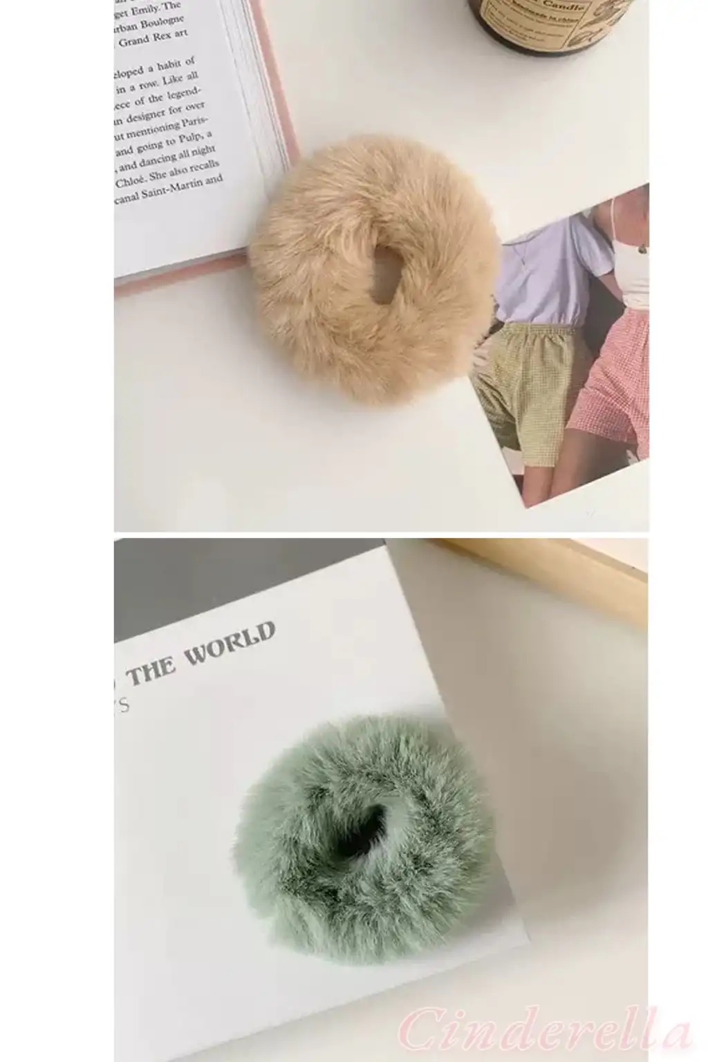 2'li Yumuşak Tüylü Renkli Peluş Lastikli Simit Toka - Peluş Scrunchie Lastik Saç Tokası Renk-5