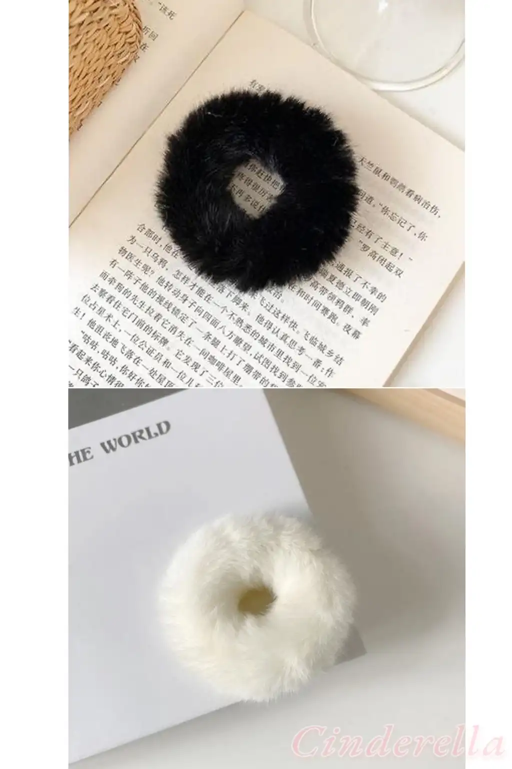 2'li Yumuşak Tüylü Renkli Peluş Simit Toka - Peluş Scrunchie Lastikli Saç Tokası Renk-1