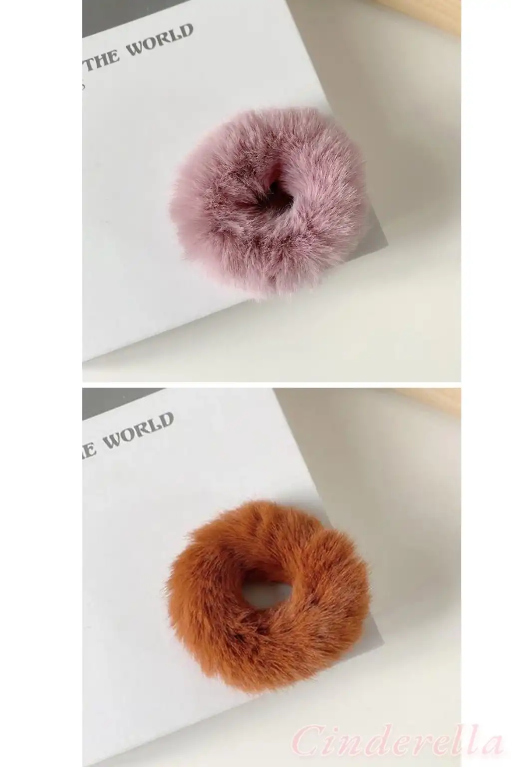 2'li Yumuşak Tüylü Renkli Peluş Simit Toka - Peluş Scrunchie Lastikli Saç Tokası Renk-4