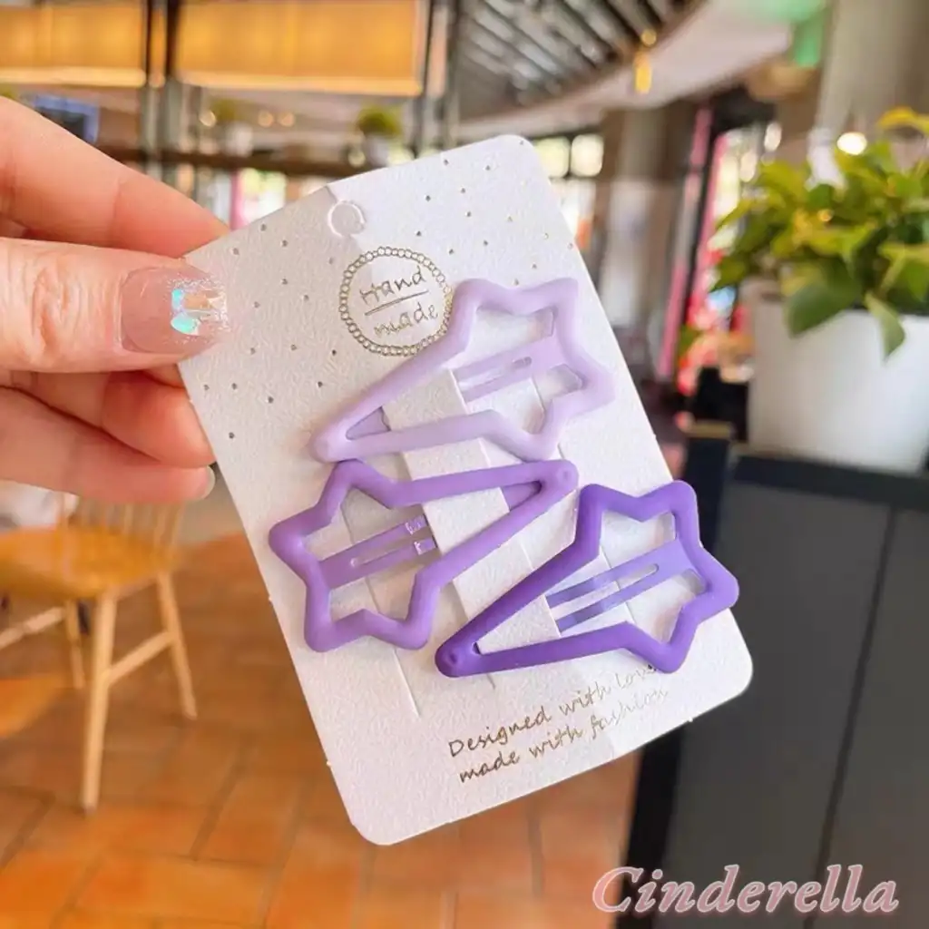 3'lü Büyük Mat Soft Mor Renkli Kayan Yıldız ÇıtÇıt Toka Seti 5.2cm - Yıldızlı Çıtçıt Çocuk Tokası