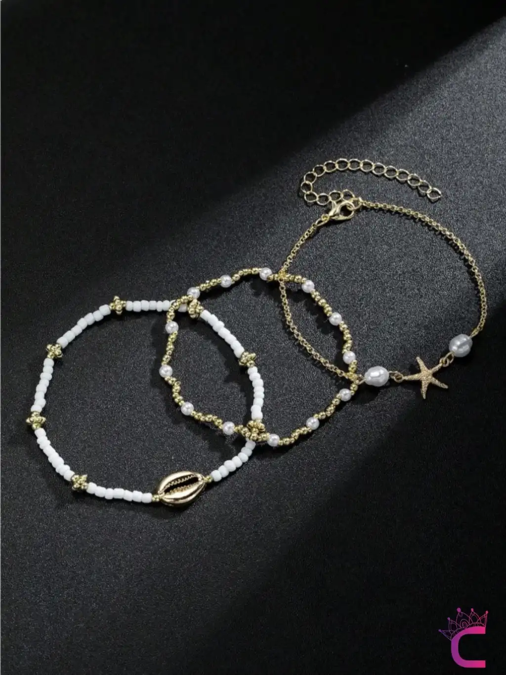 3'lü Kombin Gold Deniz Yıldızlı Miyuki Boncuk Halhal - Deniz Kabuklu Plaj Takıları Ayak Bileklik