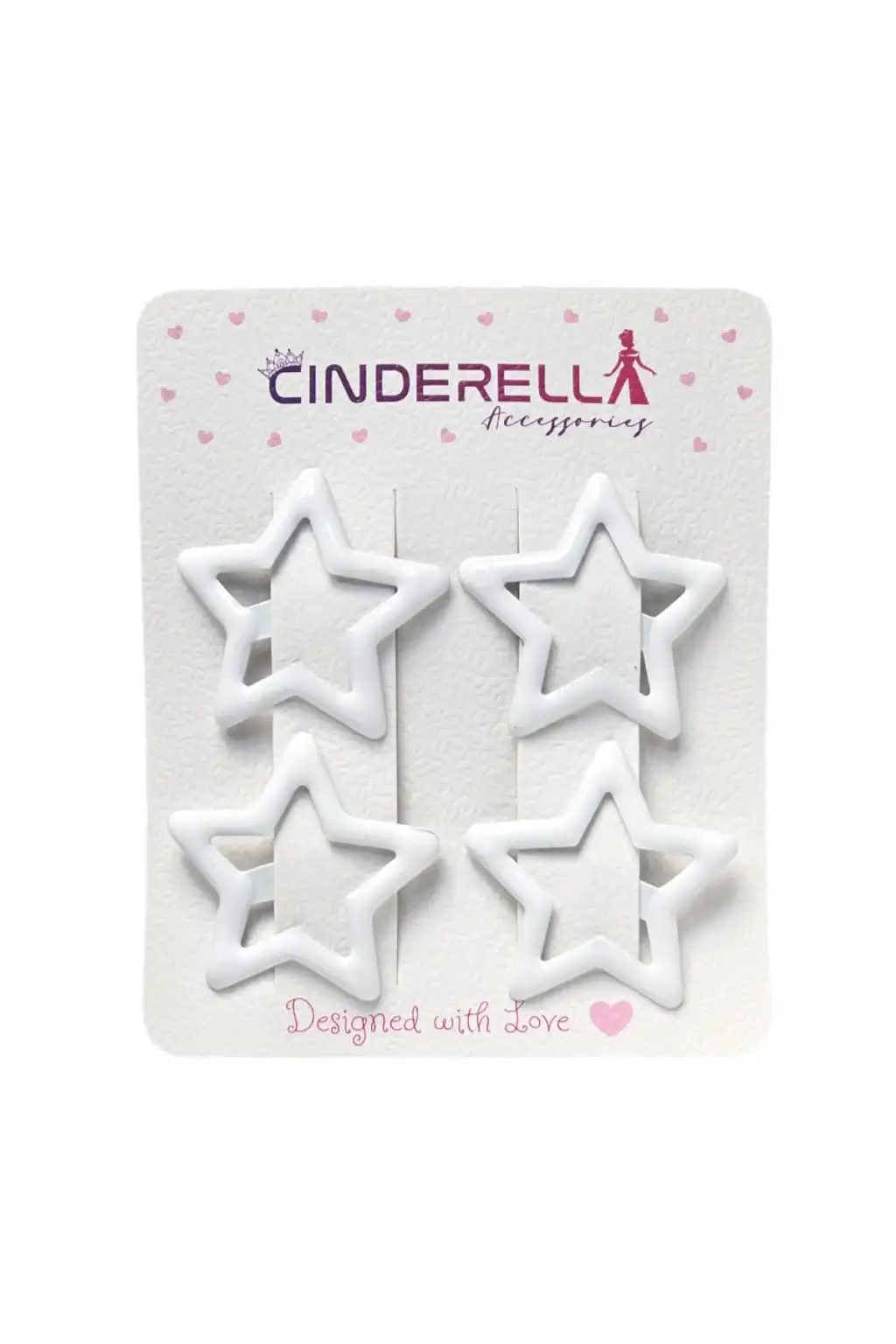 4'lü Beyaz Renkli Yıldız Çıt Çıt Toka Seti 3.2 cm - Yıldızlı Çıtçıt Toka Çıtçıtlı Saç Tokası