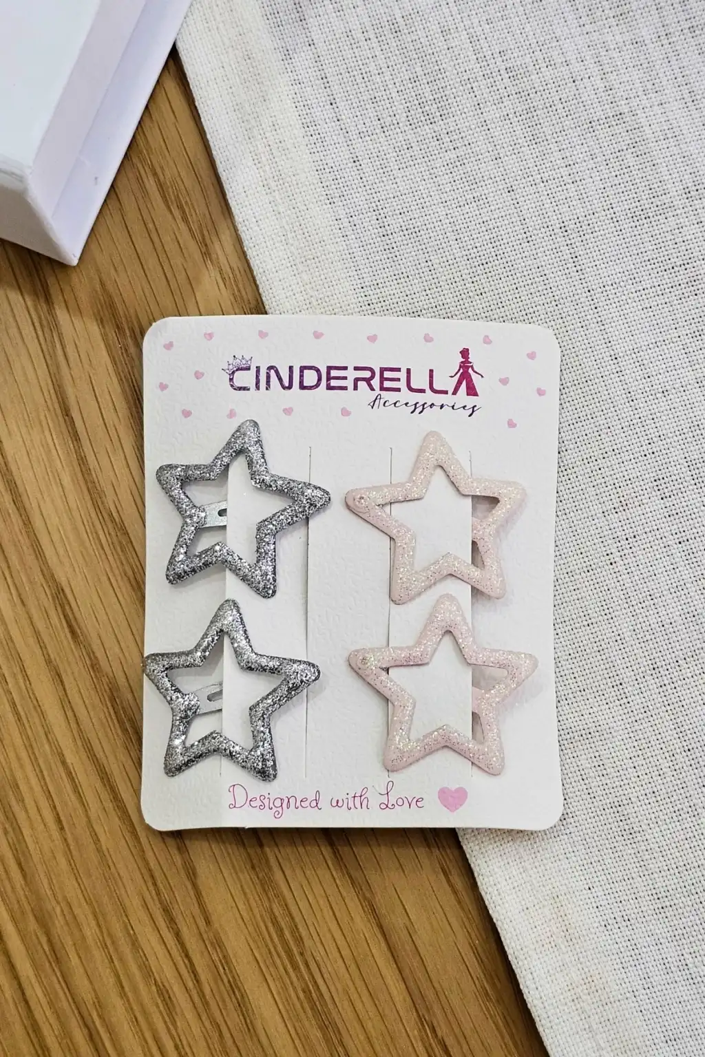 4'lü Dökme Simli Gümüş Açık Pembe Yıldızlı Çıtçıt Toka Seti - Kız Çocuk Yıldız Çıtçıtlı Saç Tokası