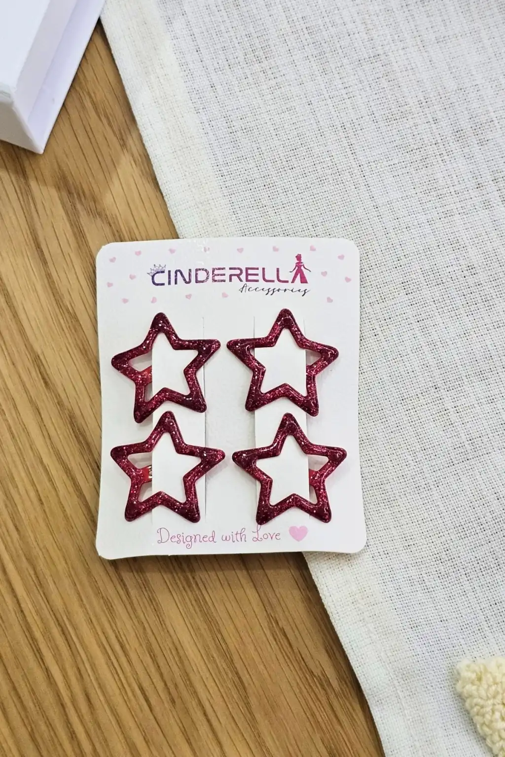 4'lü Dolgu Simli Kırmızı Yıldız Çıt Çıt Toka Seti - Kabartmalı Yıldızlı Çıtçıtlı Saç Tokası Metal