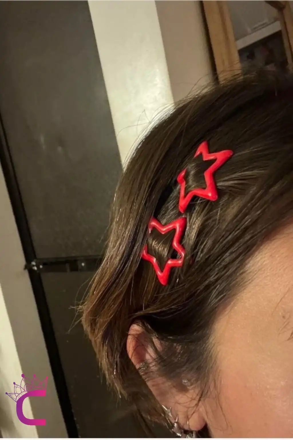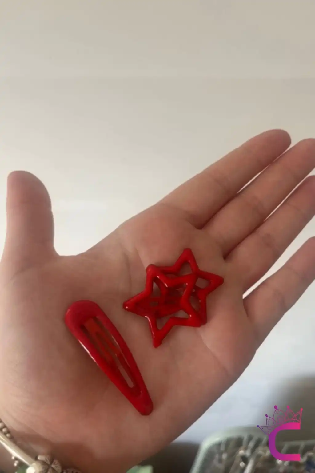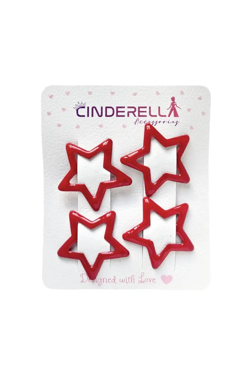 4'lü Kırmızı Renkli Yıldız Çıt Çıt Toka Seti 3.2 cm - Yıldızlı Çıtçıt Toka Çıtçıtlı Saç Tokası
