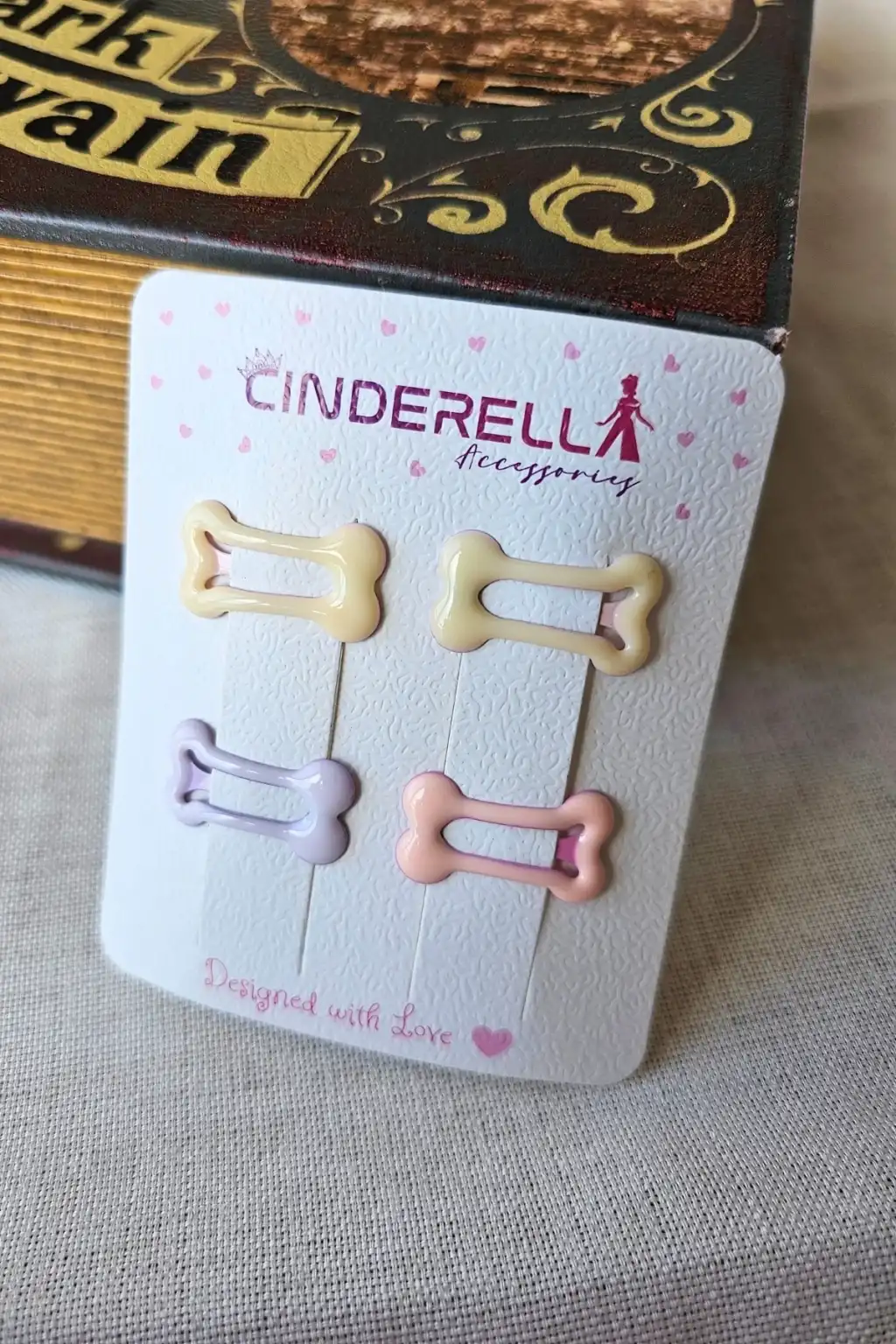 4'lü Minik Sevimli Kemik Şeklinde Kız Bebek Çıtçıt Toka 2.5cm - Soft Renkli Çıt Çıt Yan Saç Tokası