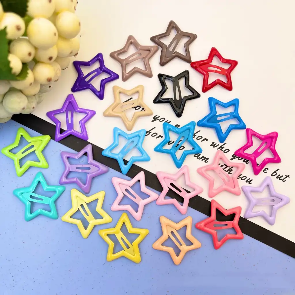 4'lü Parlak Karışık-1 Renk Yıldız Çıt Çıt Toka Seti - Renkli Yıldızlı Çıtçıt Toka - Yıldız Çıtçıtlı Toka