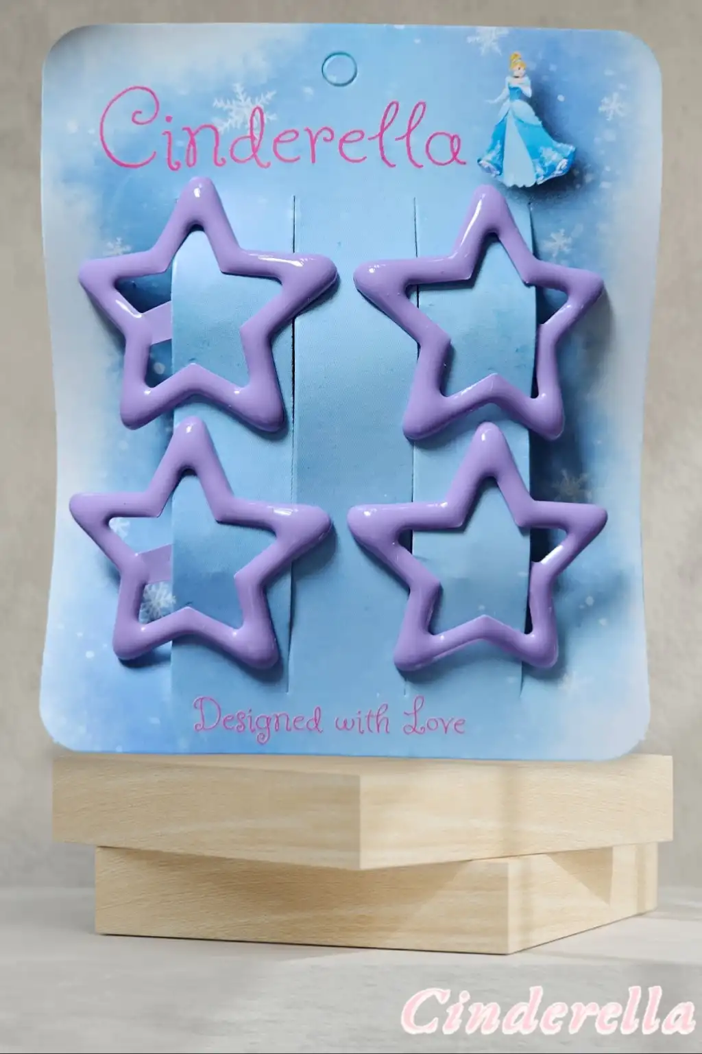 4'lü Parlak Mor Yıldız Çıt Çıt Toka Seti - Renkli Yıldızlı Çıtçıt Toka - Yıldız Çıtçıtlı Toka