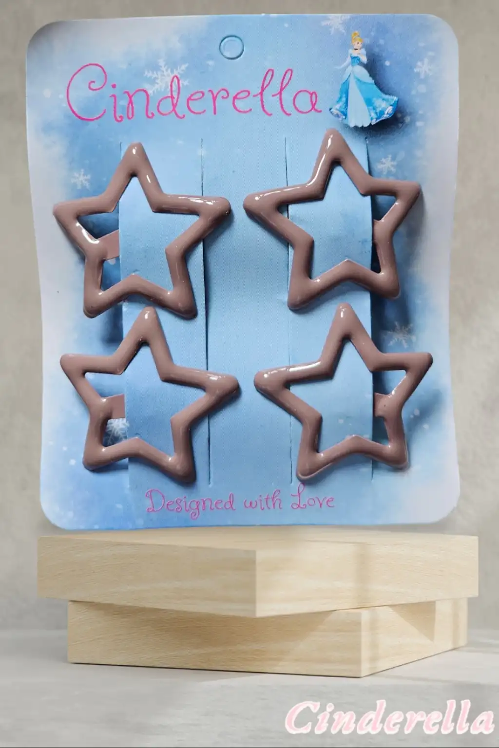 4'lü Parlak Sütlü Kahve Yıldız Çıt Çıt Toka Seti - Renkli Yıldızlı Çıtçıt Toka - Yıldız Çıtçıtlı Toka