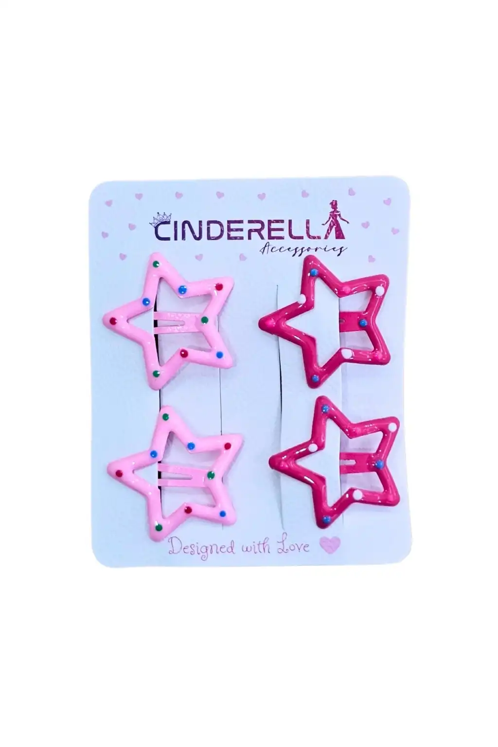 4'lü Sevimli Noktalı Yıldız Çıtçıt Toka Seti Pembe Fuşya - Kız Çocuk Yıldızlı Çıtçıtlı Saç Tokası