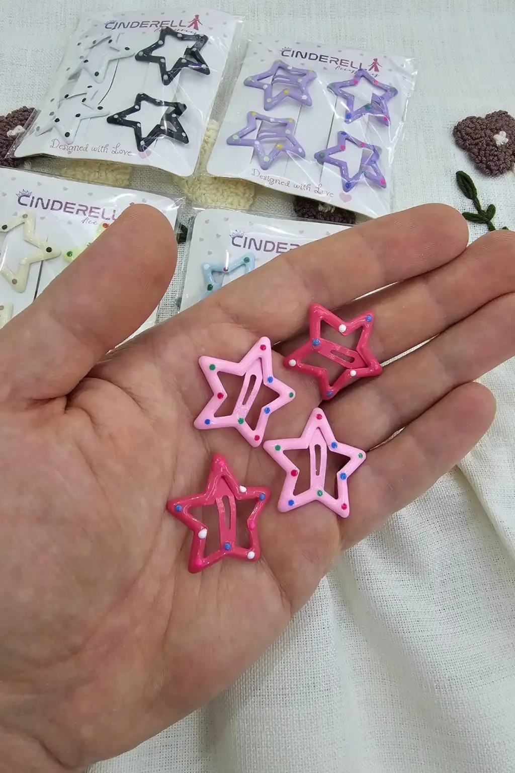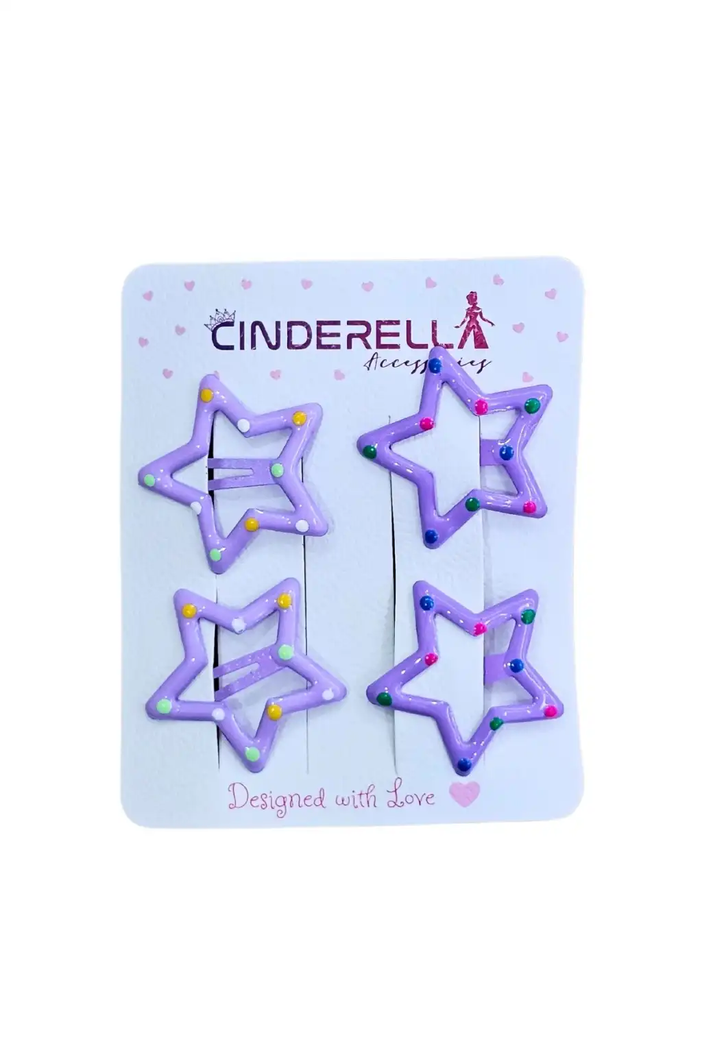 4'lü Sevimli Noktalı Yıldızlı Çıtçıt Toka Seti Mor Lila - Renkli Yıldız Kız Çocuk Çıt Çıt Saç Tokası