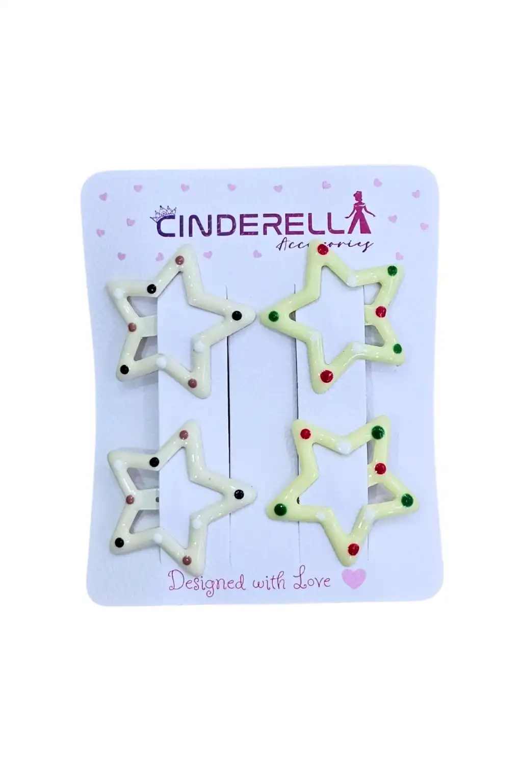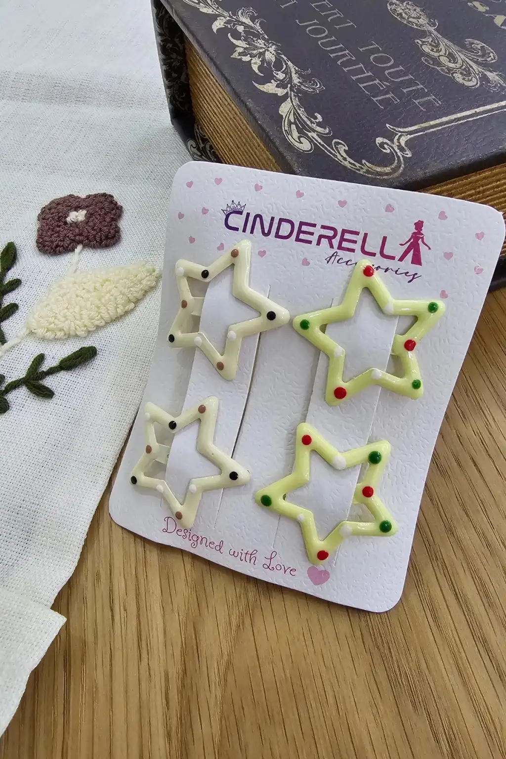 4'lü Sevimli Noktalı Yıldızlı Çıtçıtlı Toka Seti Krem Tonlu - Renkli Kız Çocuk Çıt Çıt Saç Tokası