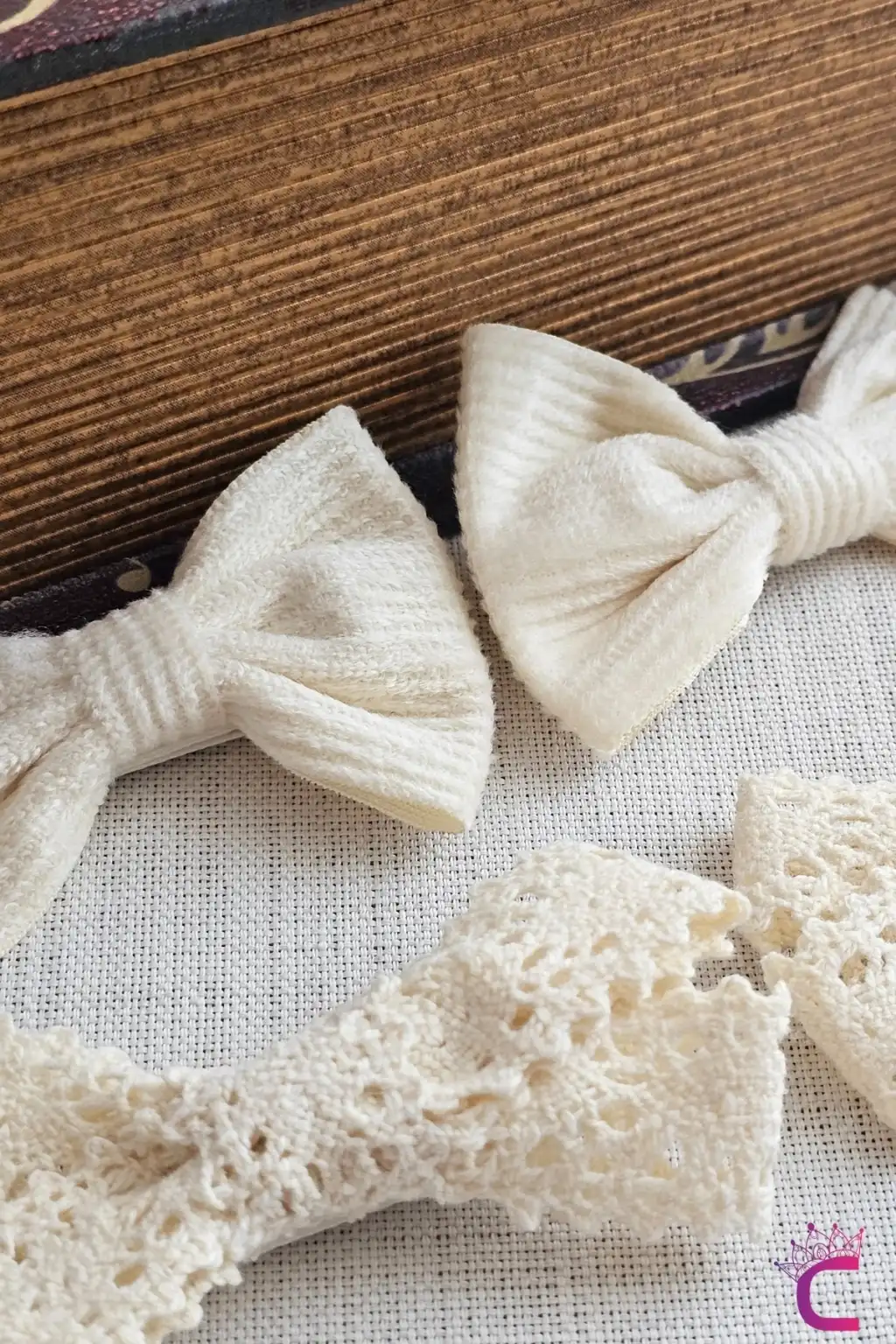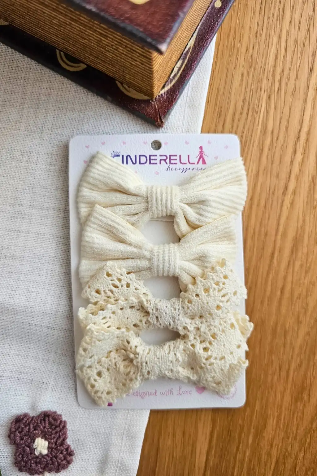 2'li İncili Sallantılı Krem Fiyonk Pens Toka Seti - Zarif Kız Çocuk Kurdeleli Klipsli Saç Tokası