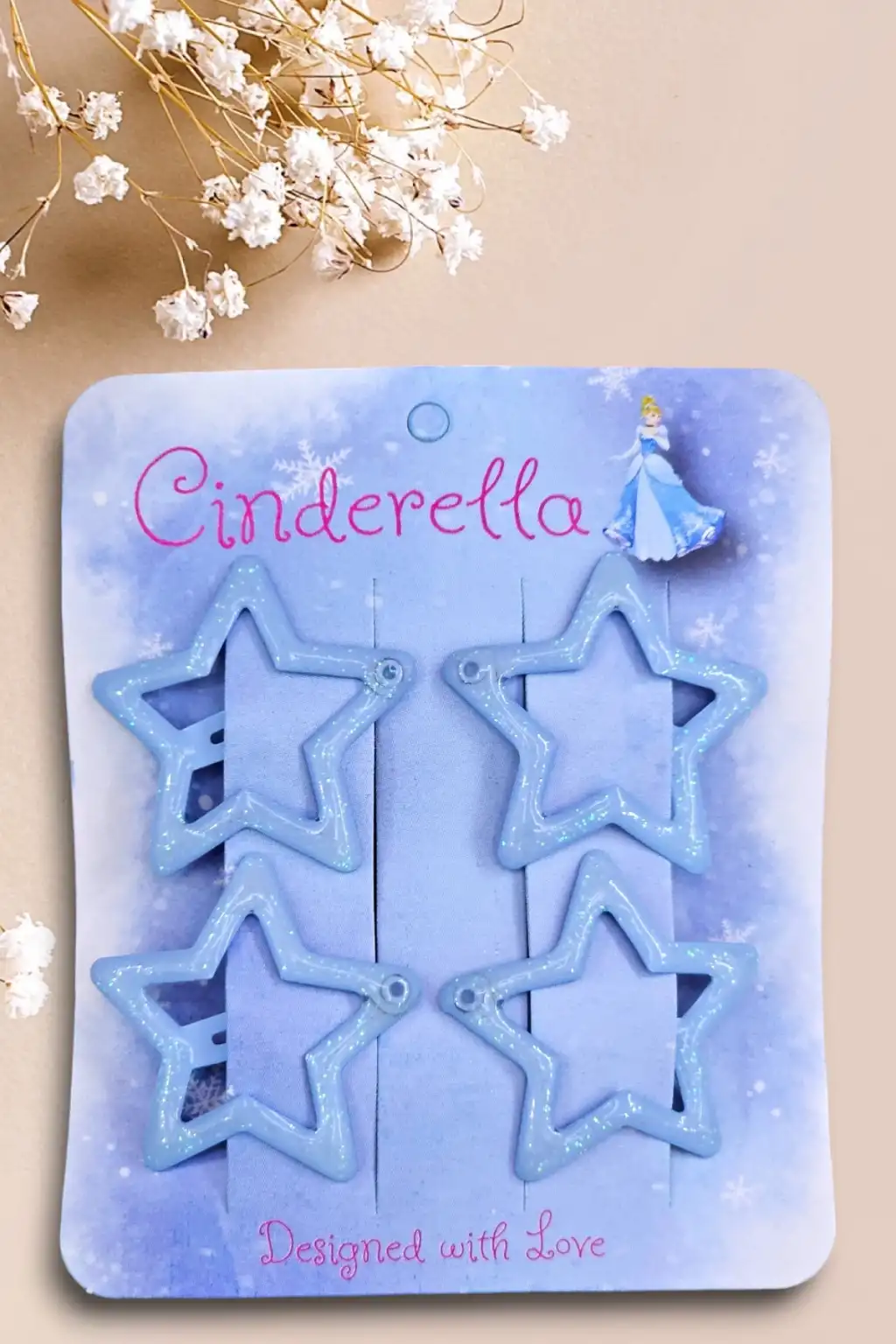 4'lü Simli Bulut Mavi Yıldız Çıt Çıt Toka Seti - Yıldızlı Çıtçıt Toka - Y2k Star Yıldız Çıtçıtlı Toka