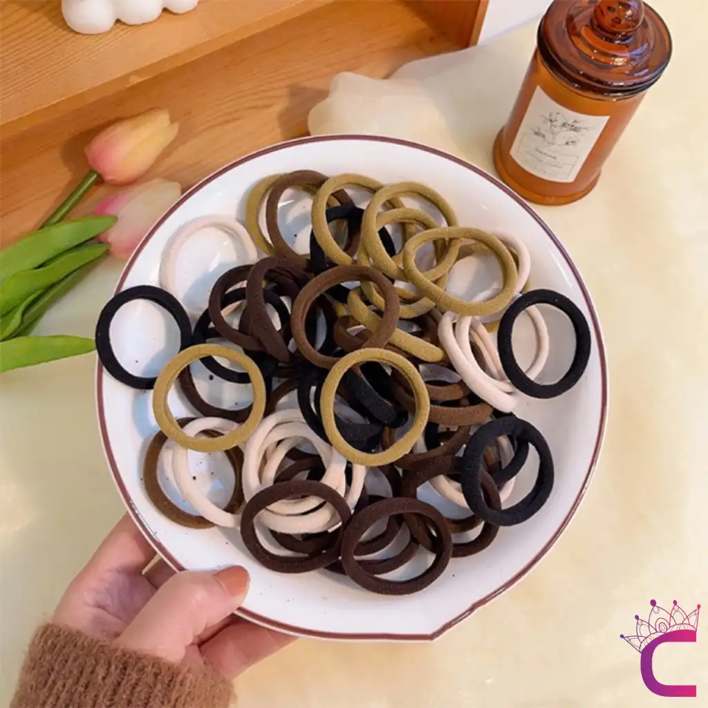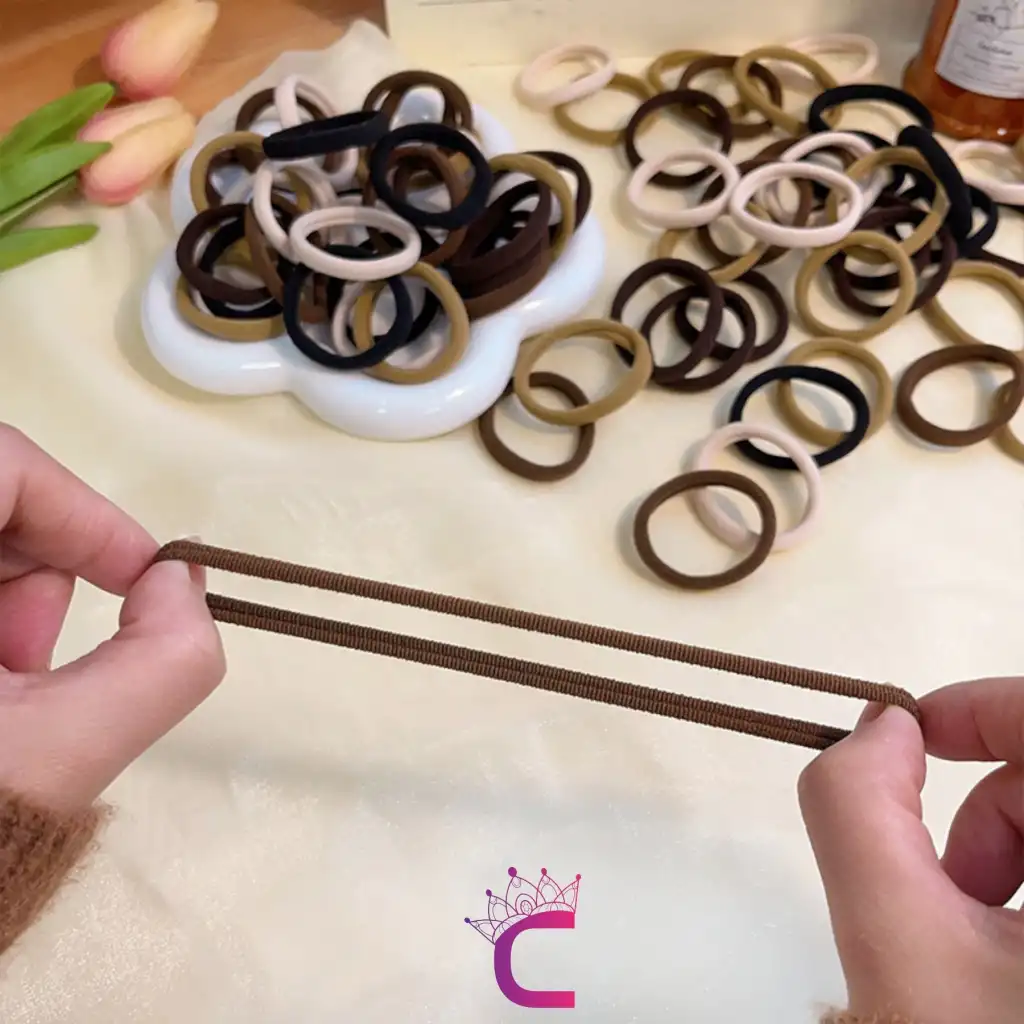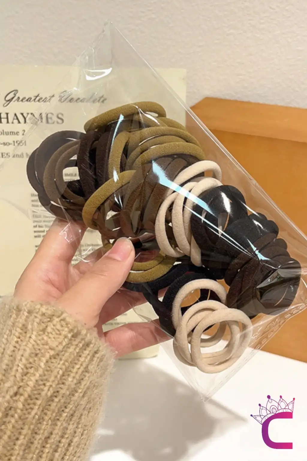 50'li Günlük Kullanım Dayanıklı Kadın Lastik Toka Seti 4cm - Kahve Tonlu Yumuşak Lastikli Saç Tokası