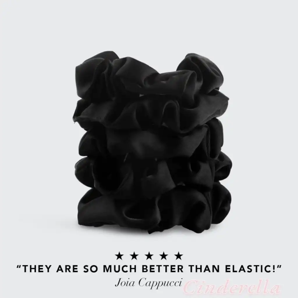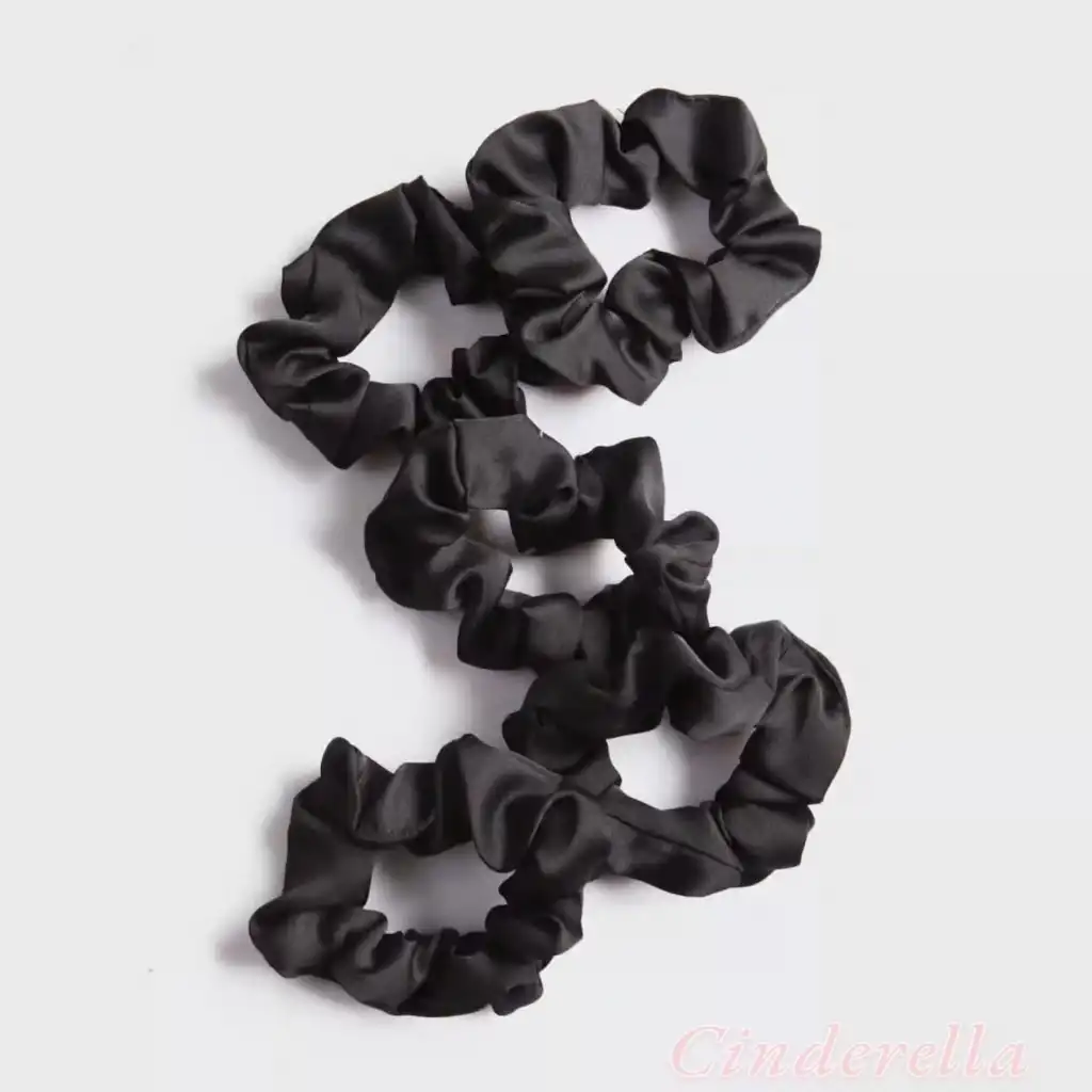5'li Çok Yumuşak Kadın Özel Saten Scrunchie Toka Seti Siyah - Rahat Kullanım Simit Lastik Saç Tokası