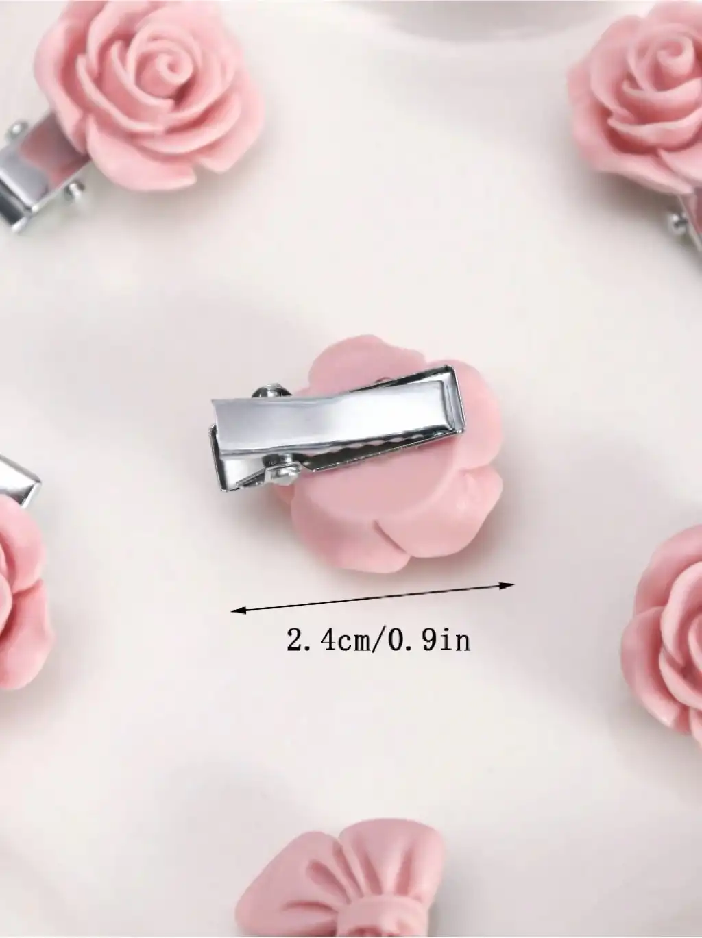 10'lu Pembe Çiçekli Taşlı Çıt Çıt Klipsli Örgü Saç Süsü - Genç Kız Çocuk Süsleme Tokası Küpesi Metal