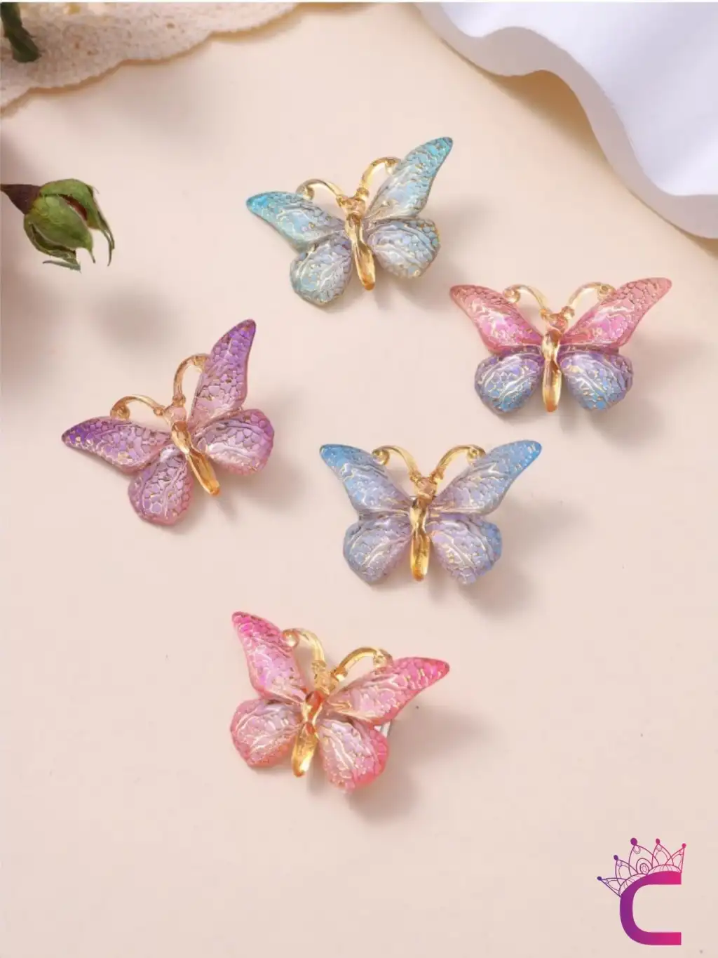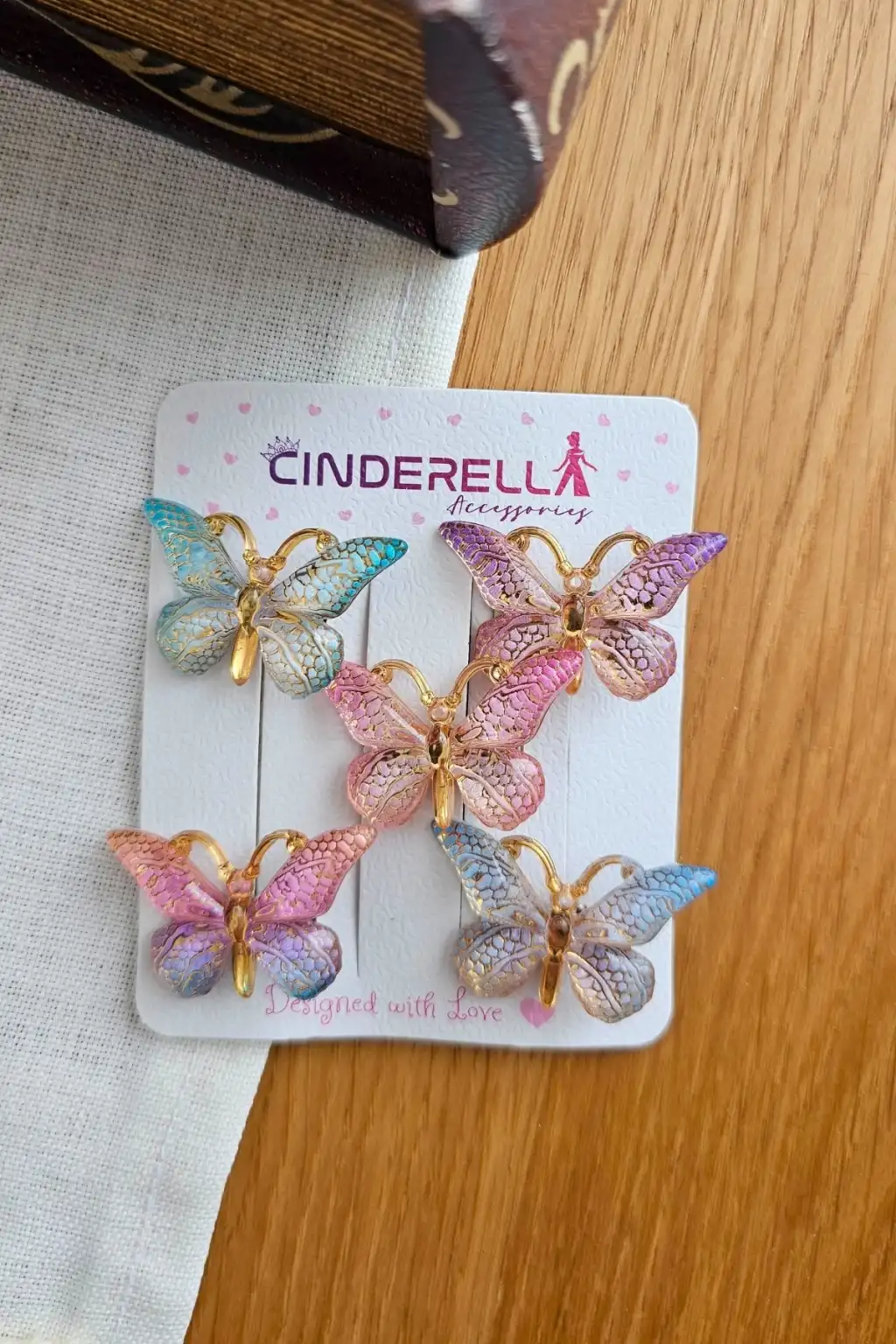 5'li Mor Pembe Mavi Degrade Silikon Dolgu Kanatlı Kelebek Toka Seti - Kelebekli Mini Pens Saç Tokası
