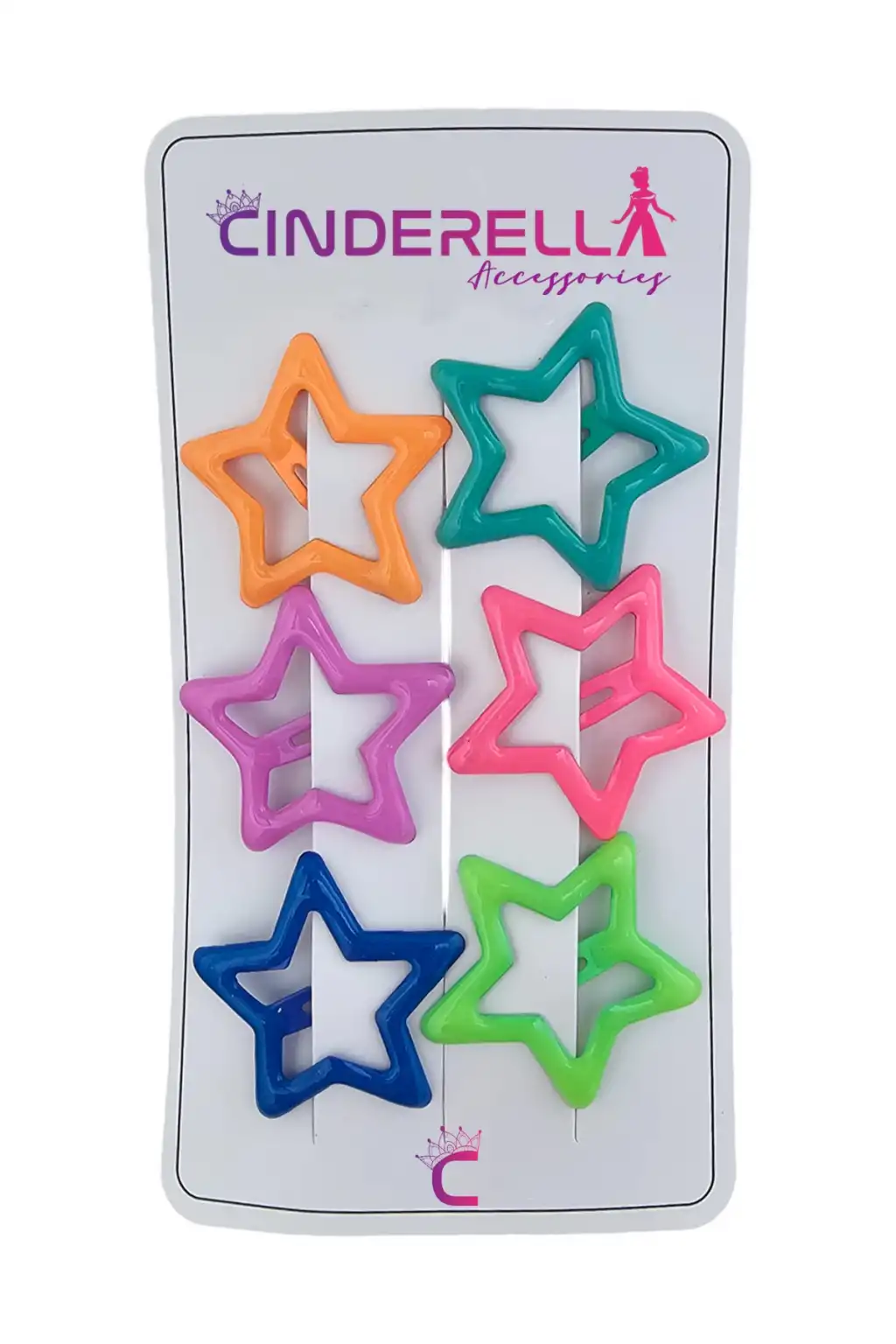 6 adet - Yıldız Çıt Çıt Toka Kaplamalı Parlak Renk - Y2k Kız Çocuk Yıldız Model Çıtçıtlı Yan Toka