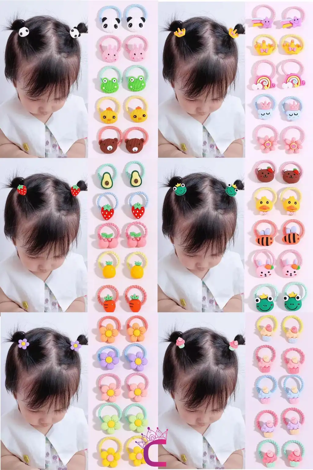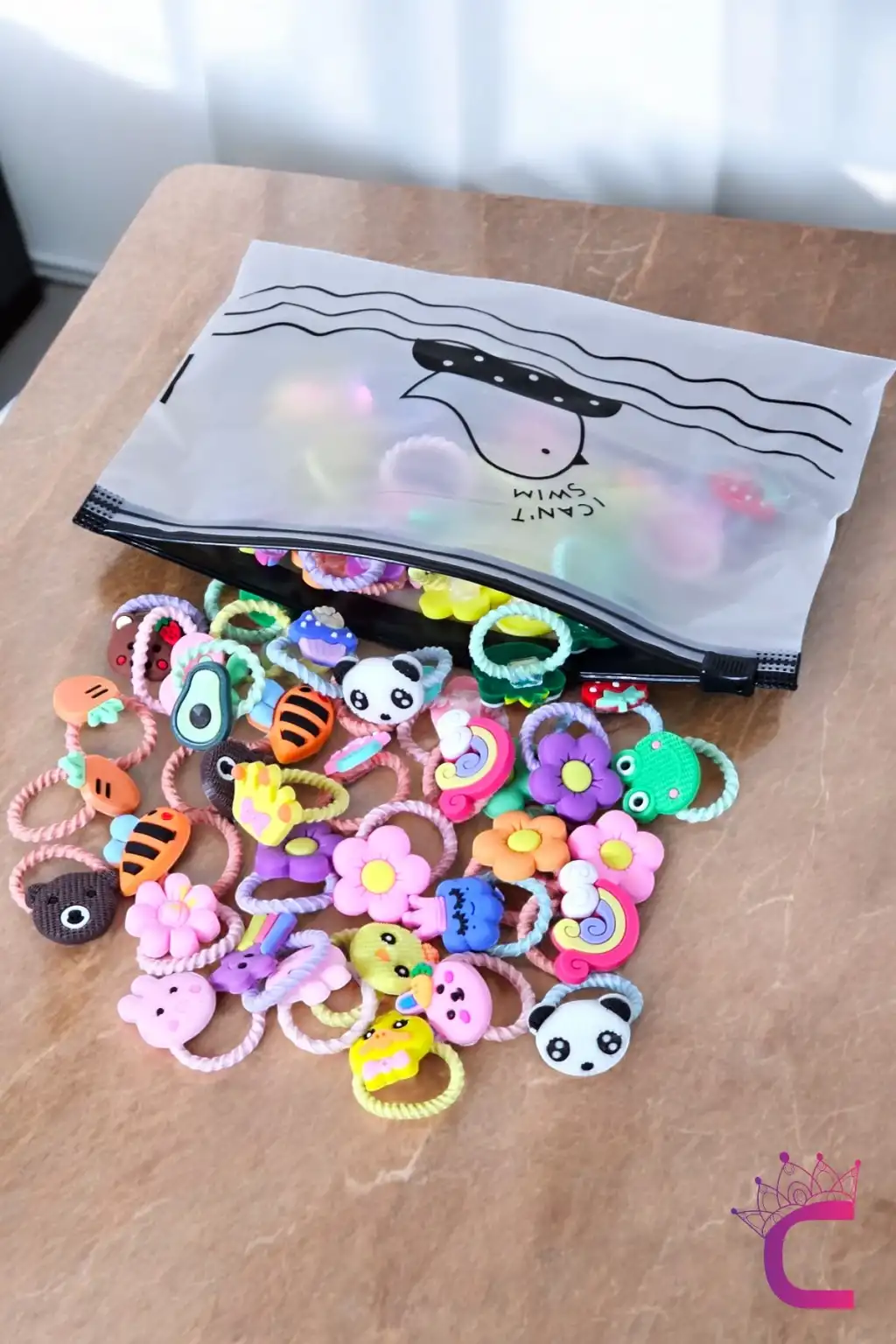 60'lı Renkli Karışık Figürlü Dayanıklı Kız Çocuk Lastik Toka Seti - Sevimli Bebek Lastikli Toka