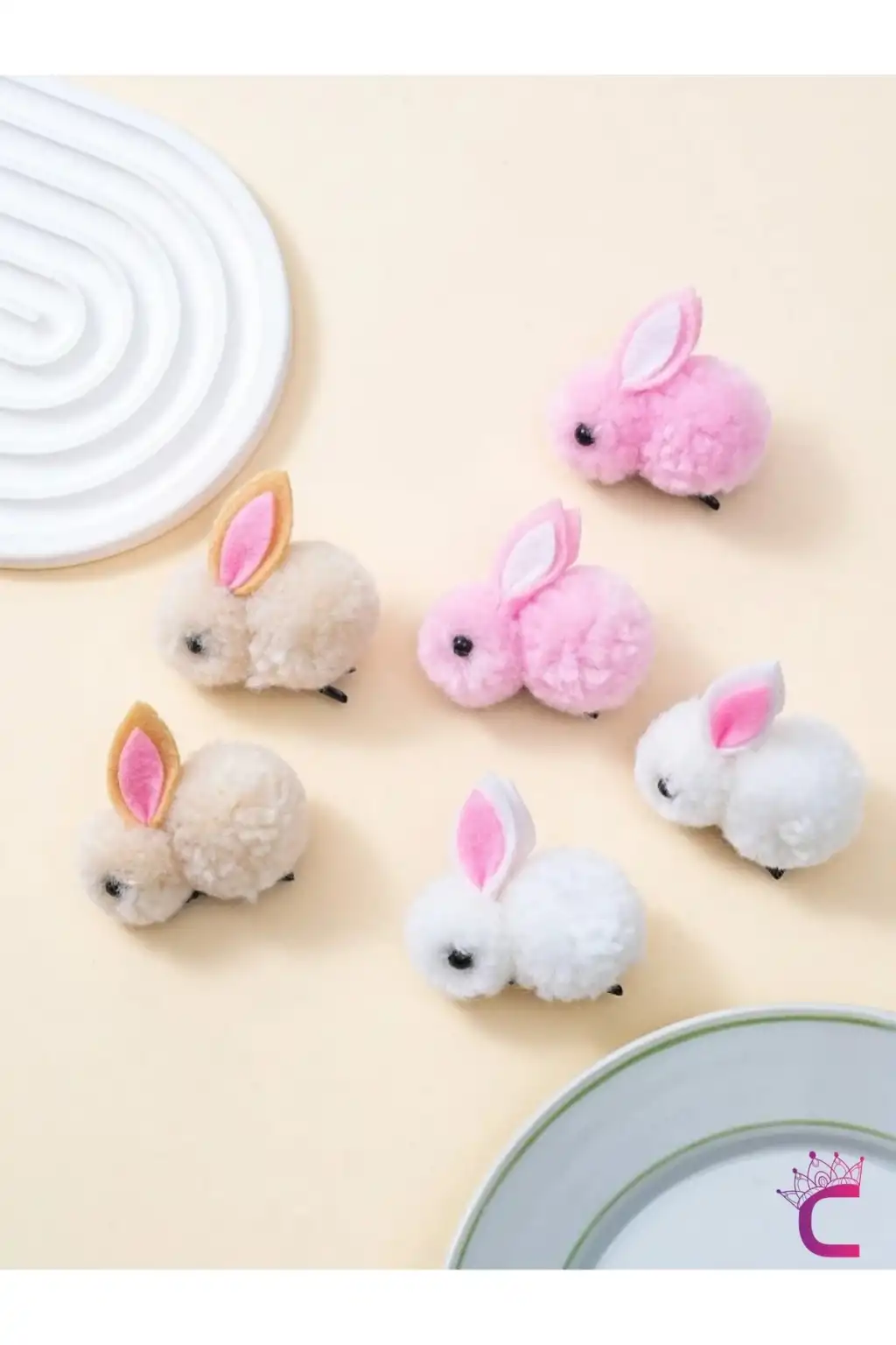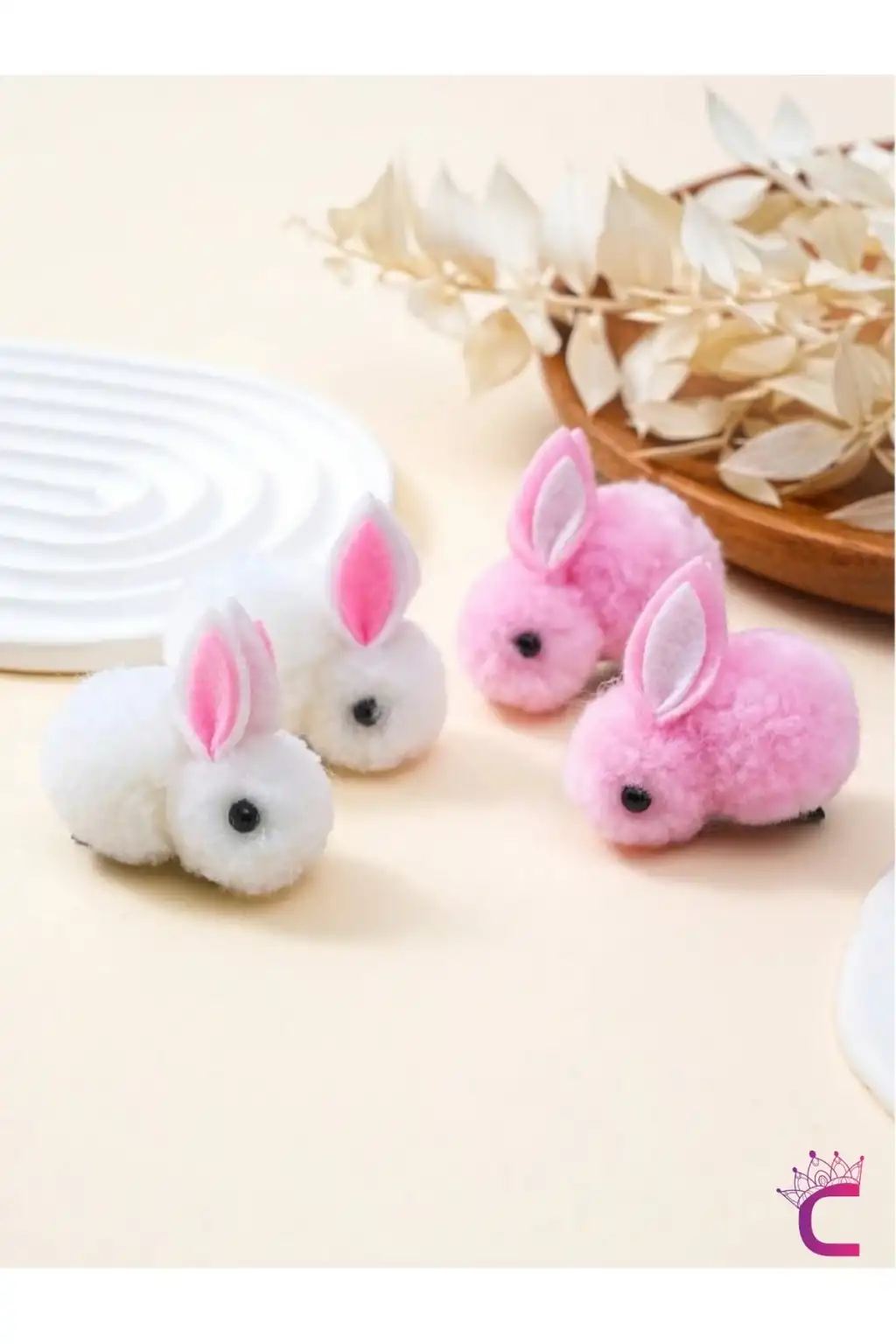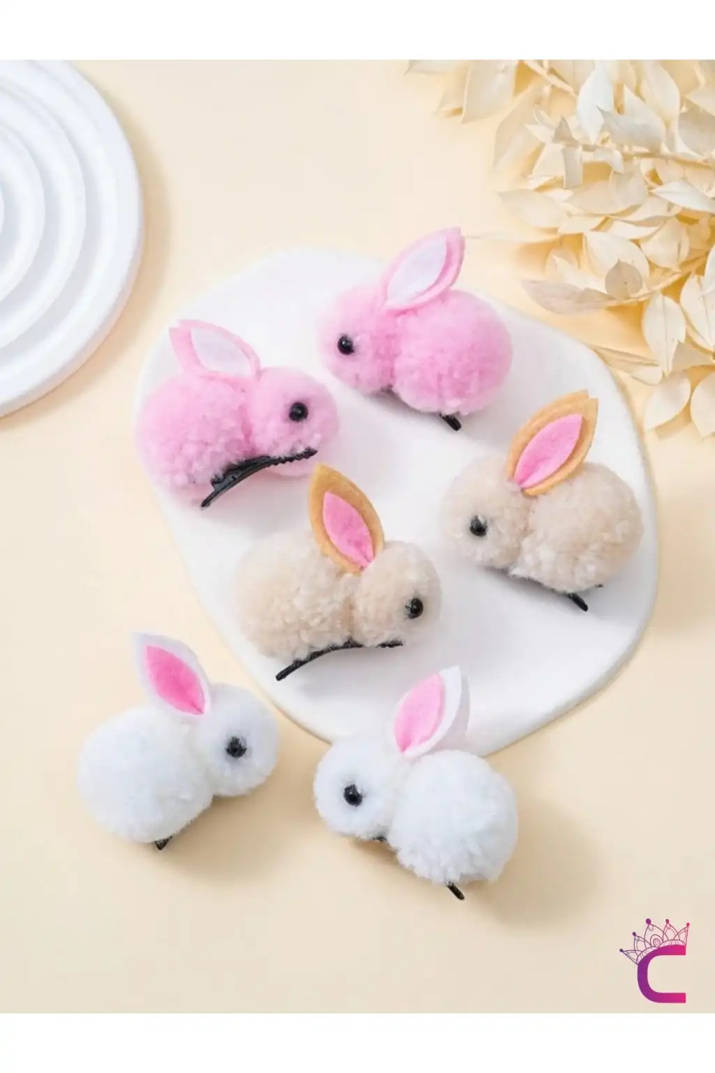 6'lı Beyaz Pembe Bej Tavşanlı Yumuşak Astarlı Pens Toka Seti - Kız Bebek Çocuk Klipsli Saç Tokası