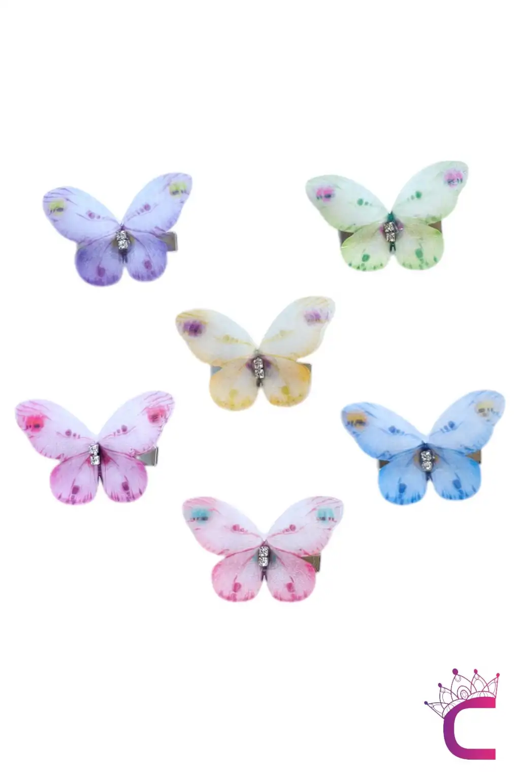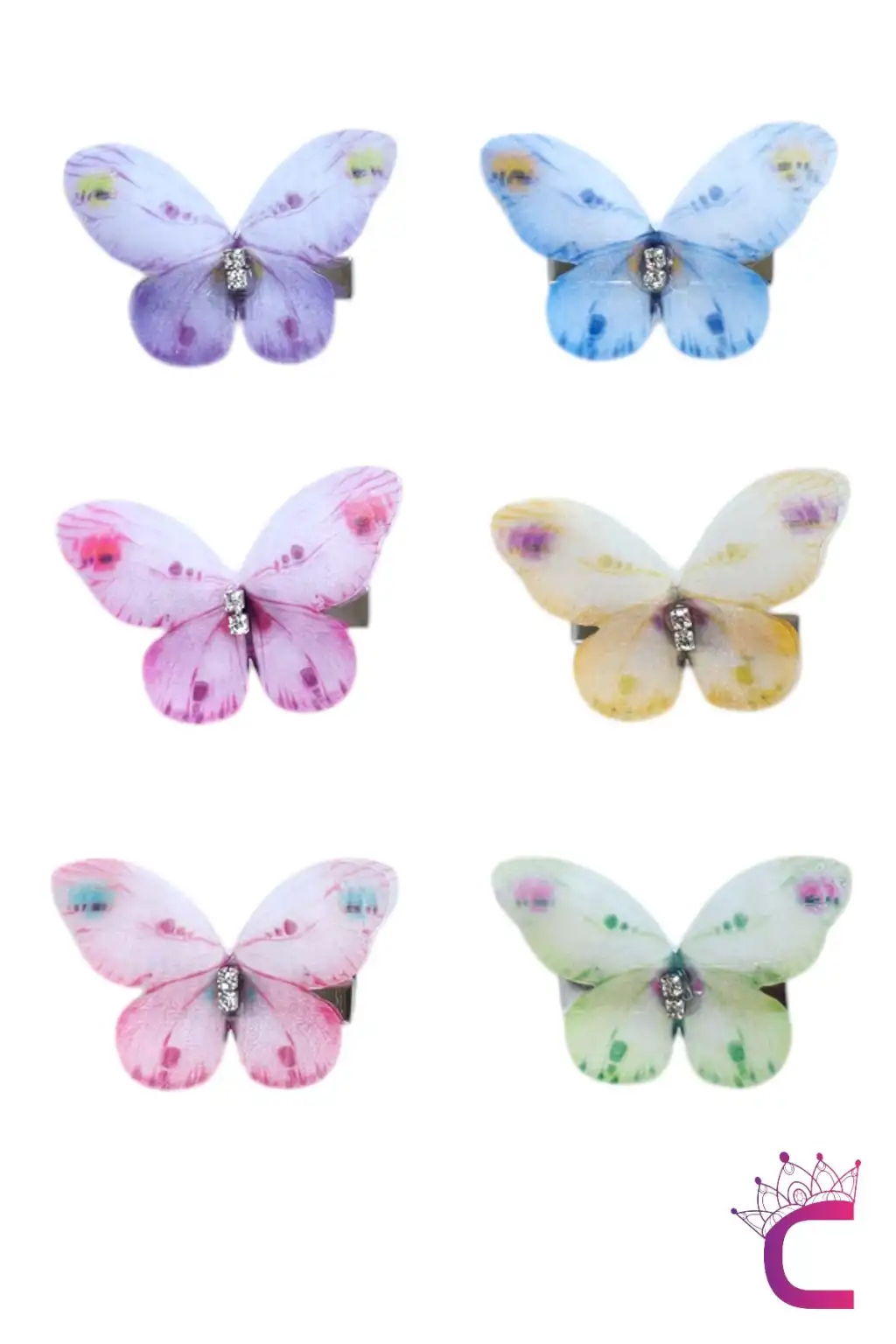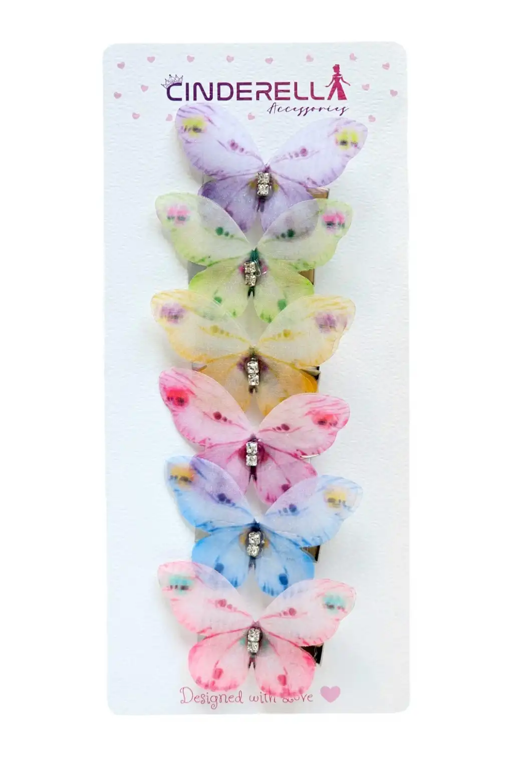 6'lı Hareketli Kelebek Toka Seti Renkli Gerçekçi Kumaş - Zirkon Taşlı Kelebekli Toka Pens Saç Tokası