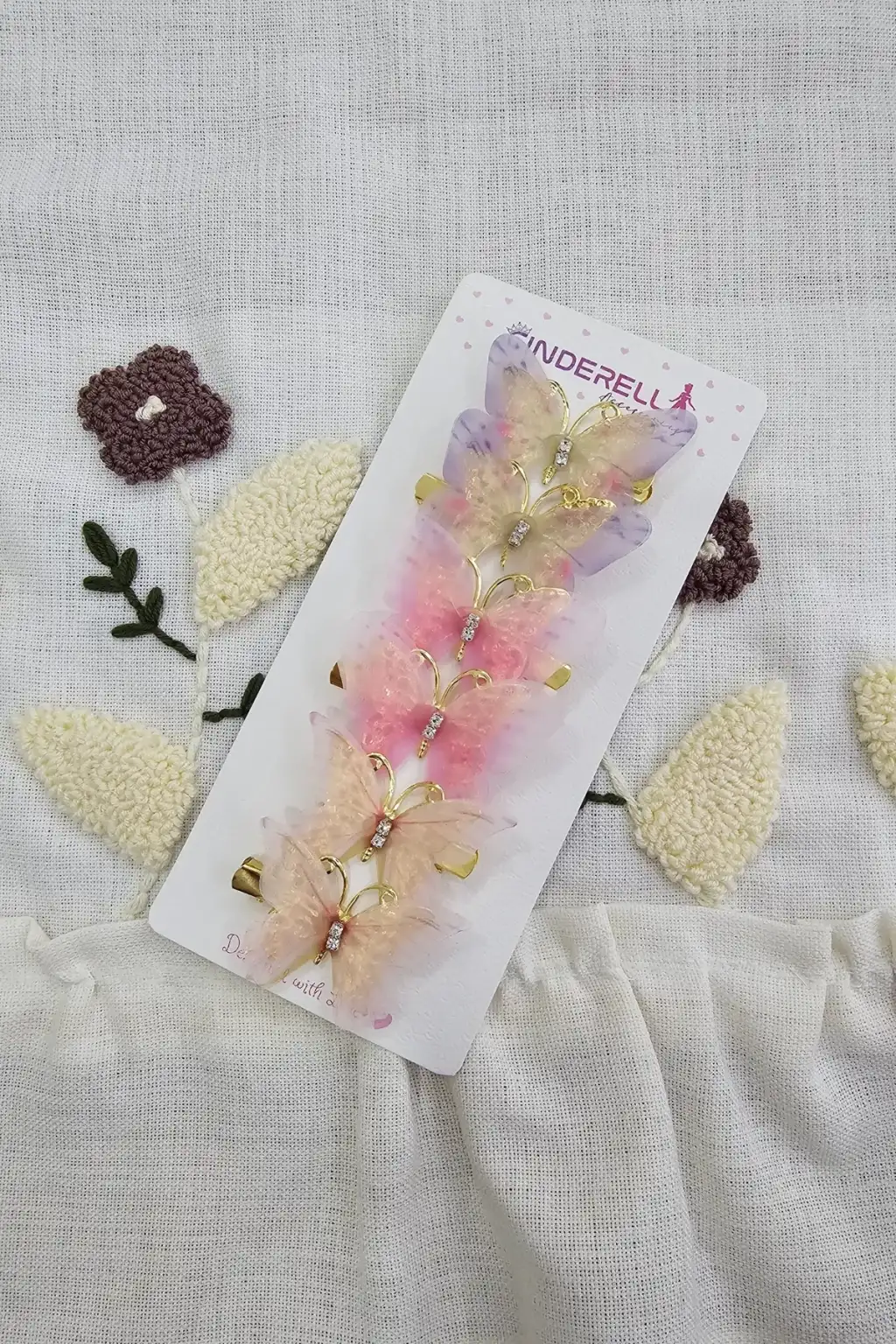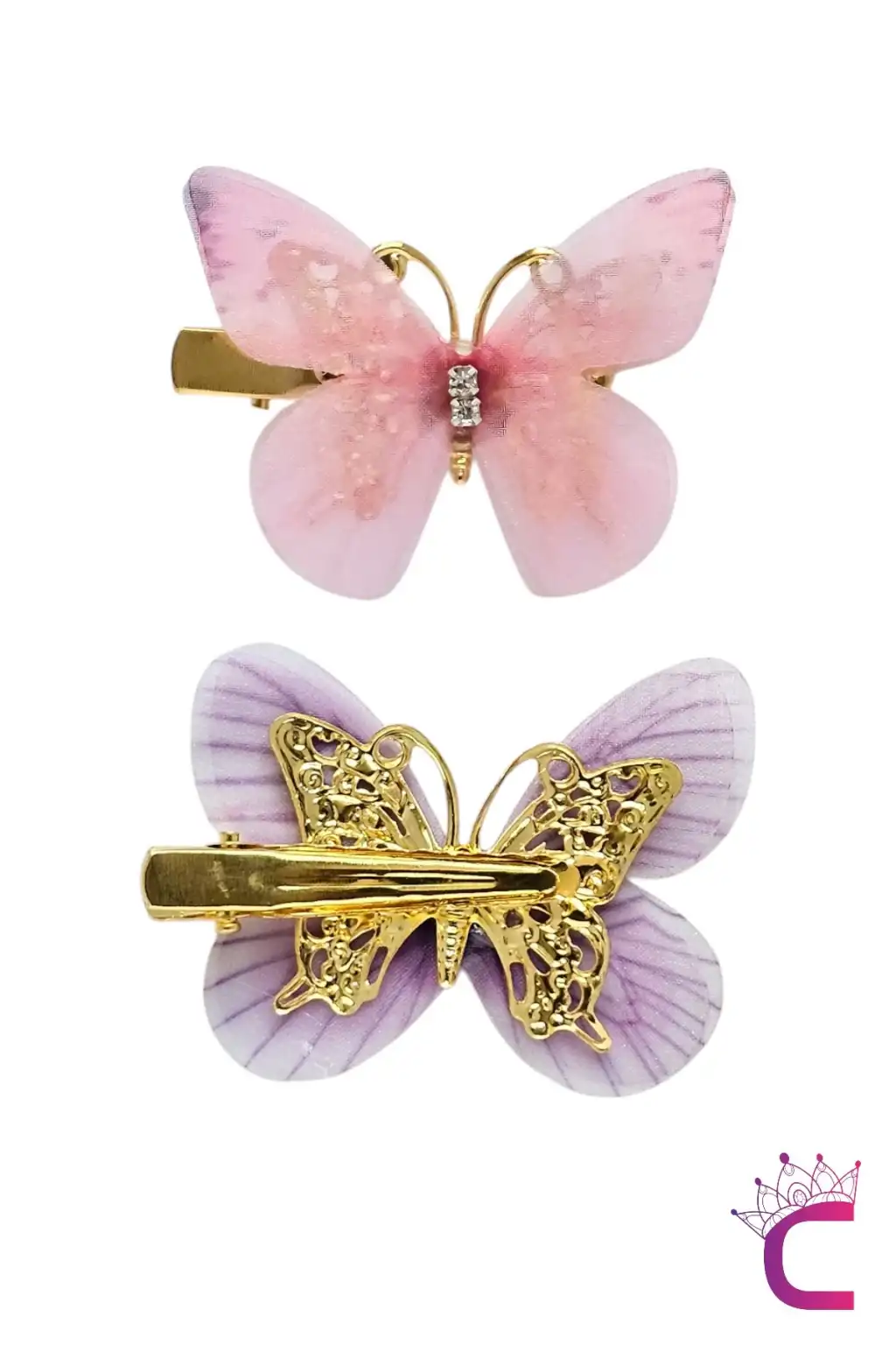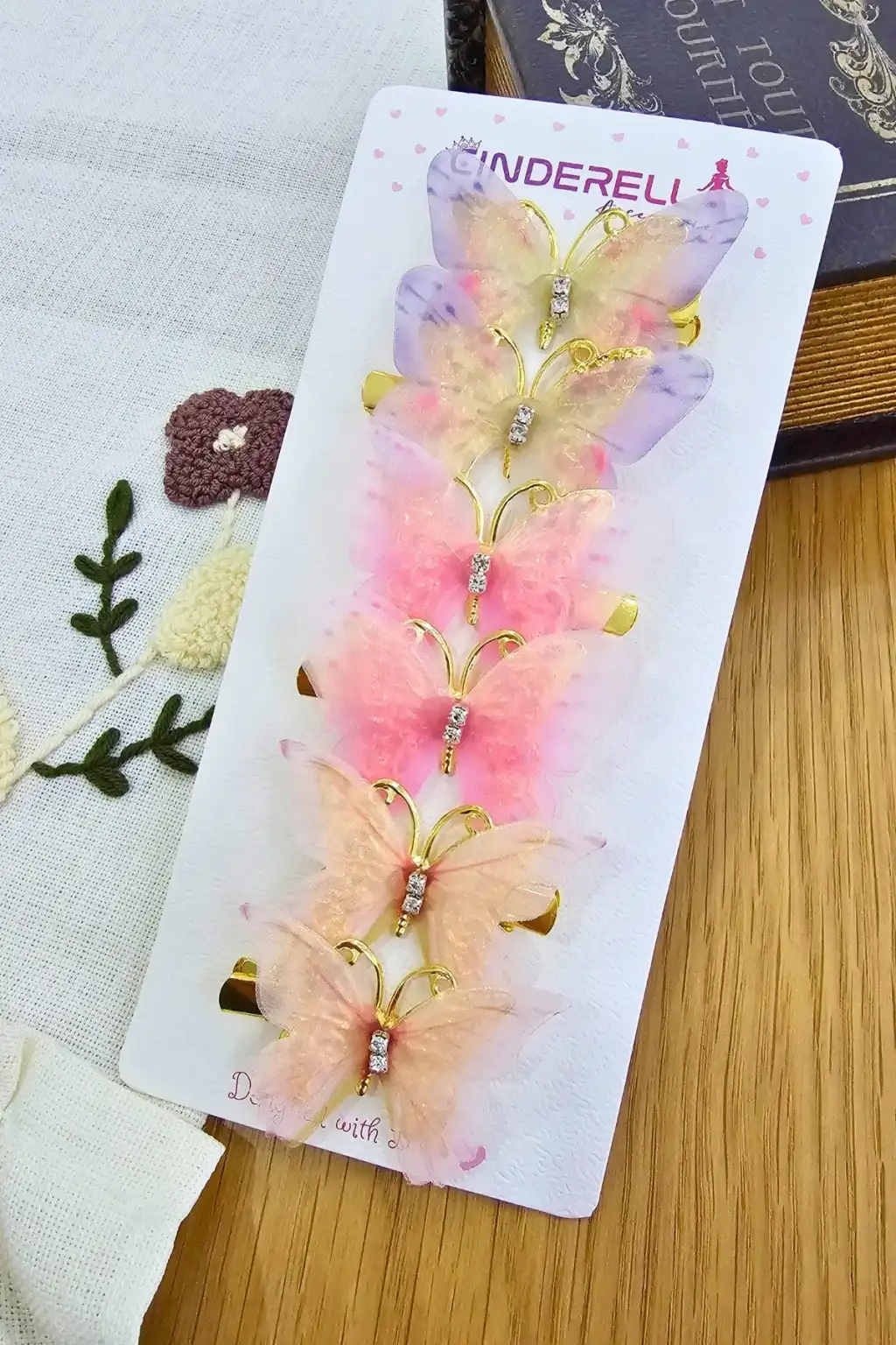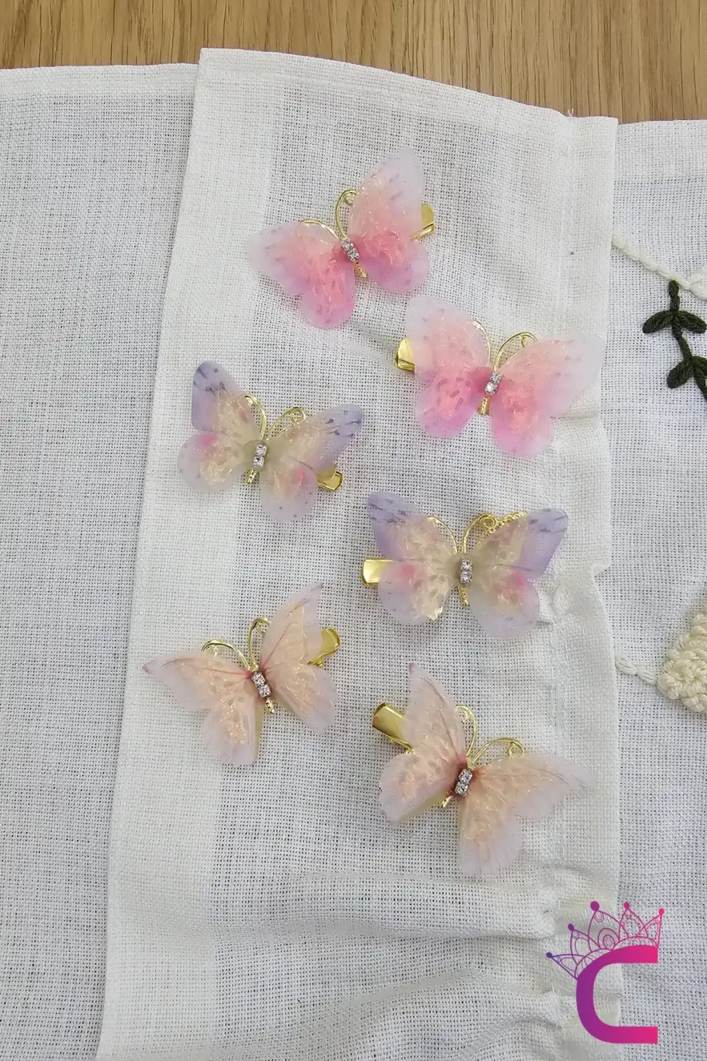6'lı Özel Seri Tül Kanatlı Taşlı Kelebek Toka Seti 5cm - Hareketli Renkli Kelebekli Pens Saç Tokası