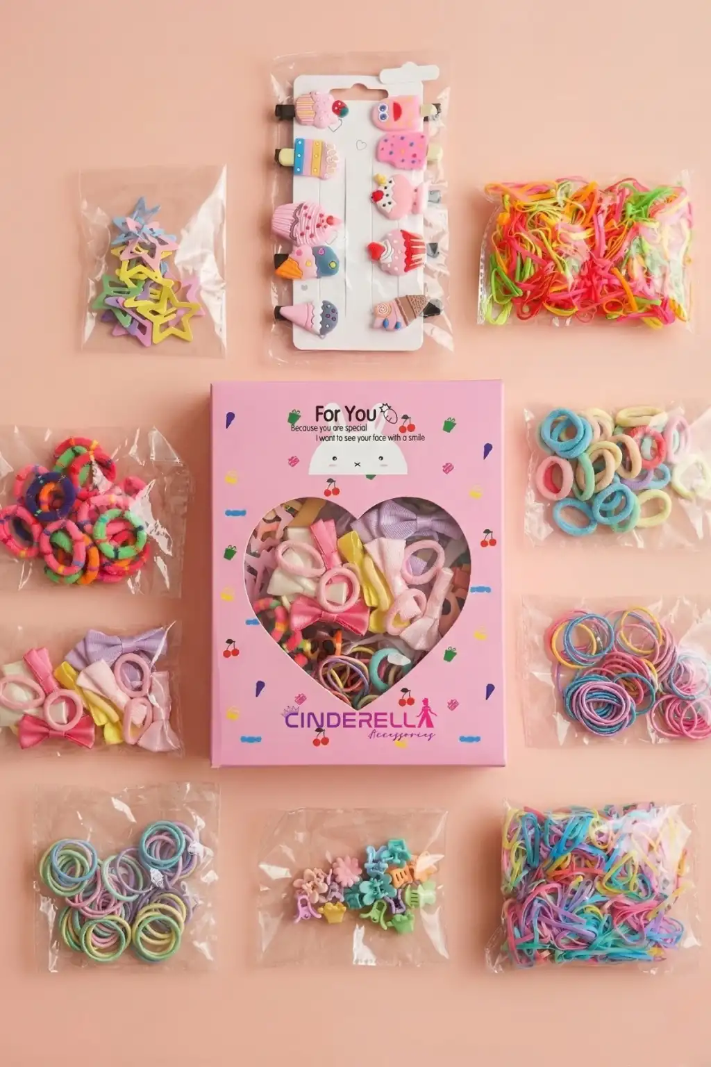 895 Parça Hediyelik Kutulu Kız Çocuk Toka Seti - Unicorn Fiyonk Yıldız Çıtçıtlı Bebek Saç Tokası