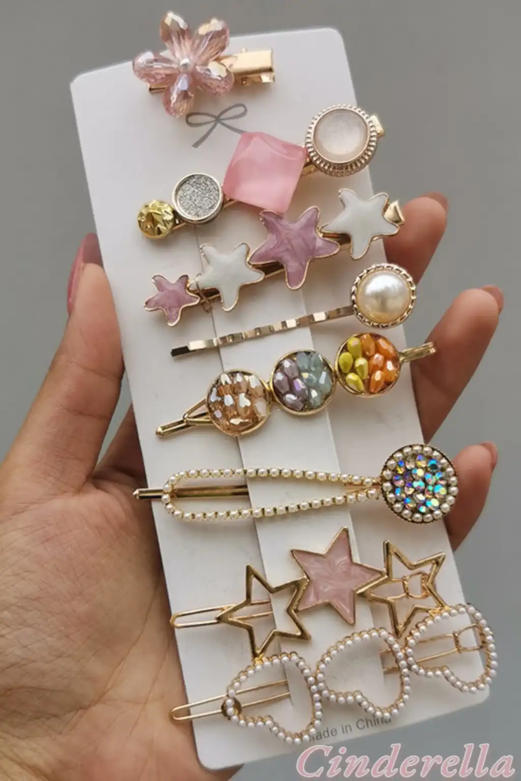 8'li Kadın İncili Taşlı Yıldızlı Kalpli Çiçekli Özel Toka Seti - Pens Çıtçıt Klips Yan Saç Tokası