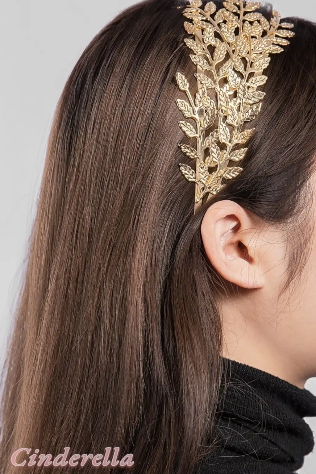 Avrupa Stil Barok Yapraklı Model Kadın Tacı Gold - Zarif ve Şık Taç Saç Bandı Aksesuarı