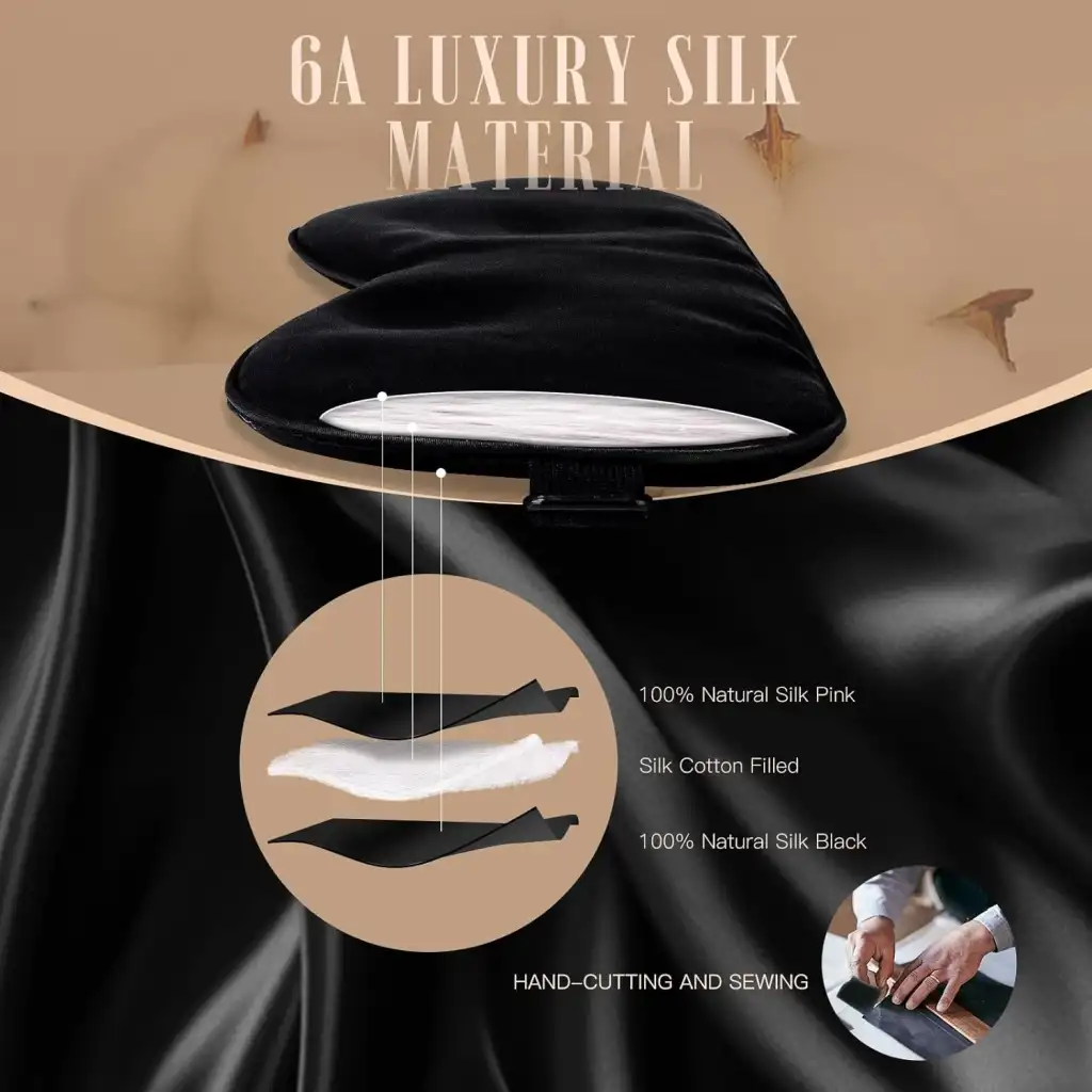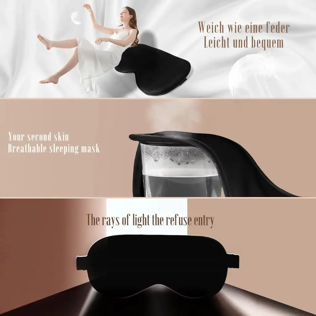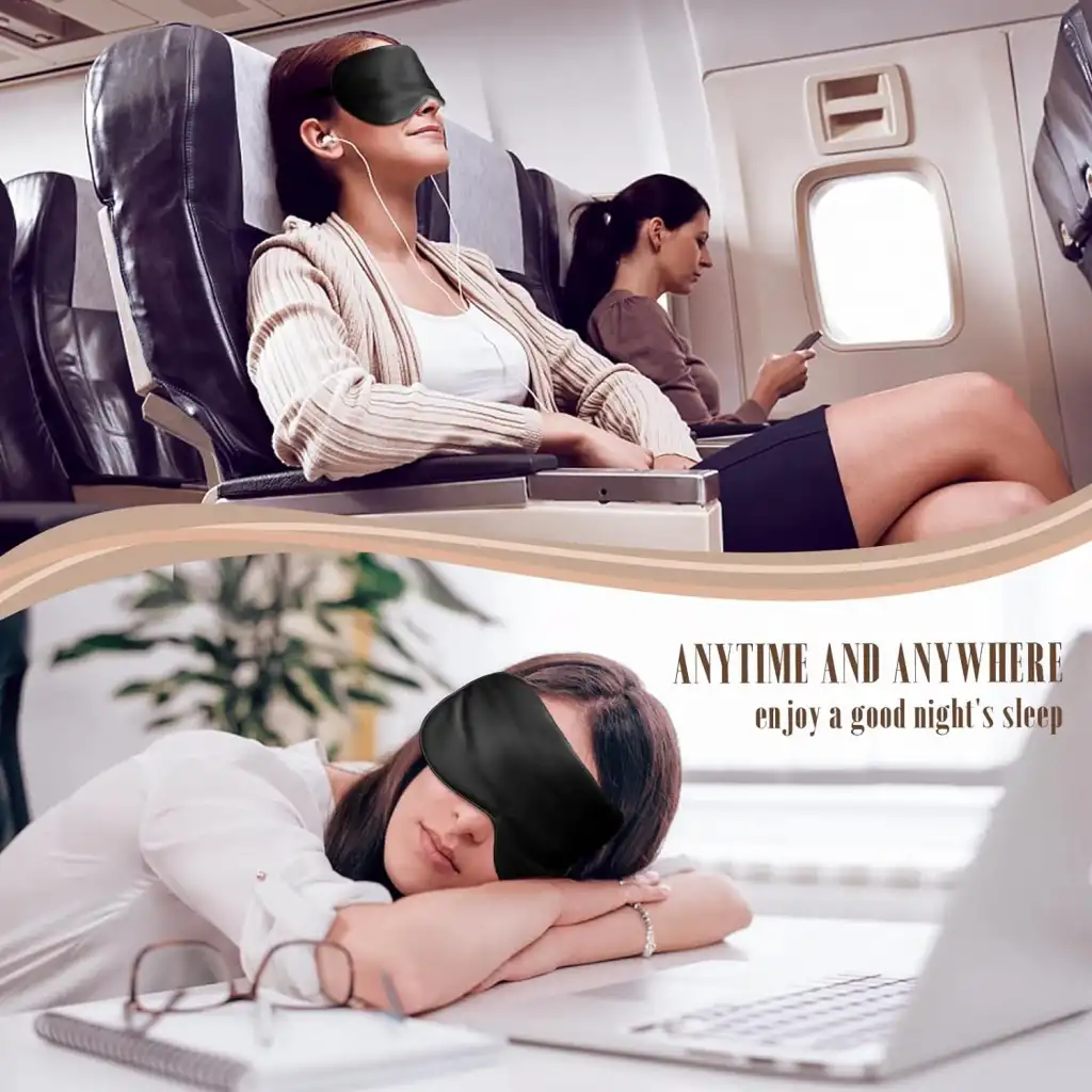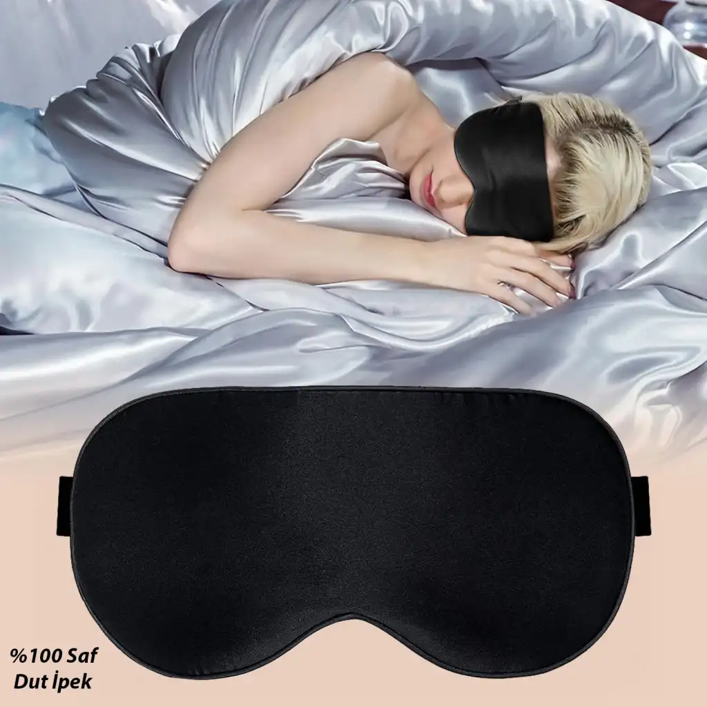 Ayarlanabilir Kayışlı %100 Dut İpek Uyku Maskesi Siyah - Yan Yatanlar için Rahat Uyku Göz Band